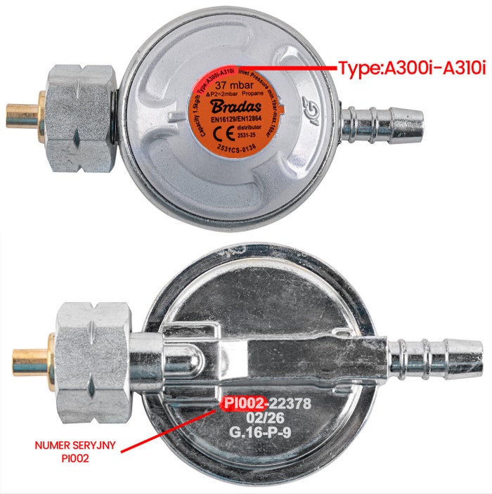 REDUKTOR GAZOWY 37mbar BRADAS - wycofanie ze względów bezpieczeństwa