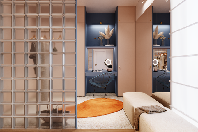 Pomieszczenia bez okien da się na różne sposoby doświetlać – np. budując ściankę z luksferów, tak, by naturalne światło przenikało z pokoju obok.