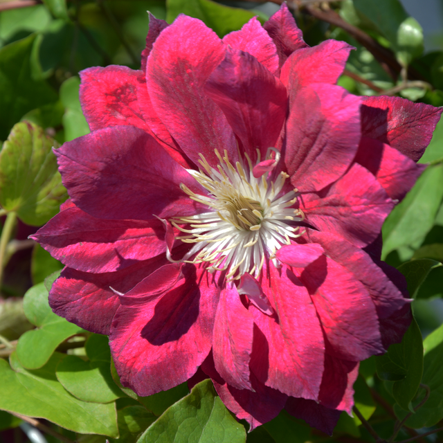 ‘Jackmanii’ – duże kwiaty tej odmiany mogą mieć nawet 15 cm średnicy i są ozdobą rośliny od czerwca do września. Kwiaty mają ciemne, niebiesko-fioletowe barwy i kontrastowe, zielonkawo-kremowe pylniki.
