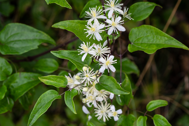 Powojnik pnący (Clematis vitalba) to dziko rosnące w naszym kraju pnącze, które spotkać można na słonecznych obrzeżach lasów lub w widnych zaroślach. Roślina ta rośnie bardzo szybko i silnie się rozrasta, często osiąga nawet 12 m wysokości. Powojnik pnący kwitnie bardzo obficie i długo – od początku lipca do października. Ma białe, liczne, drobne kwiaty o średnicy około 2 cm, które zebrane są w wiechy. Dekoracyjne są także puszyste owocostany barwy srebrzysto-białej, które zdobią roślinę do późnej jesieni. Powojnik pnący dobrze sobie radzi w niemal każdych warunkach, ale najlepiej rośnie (i najpiękniej kwitnie) posadzony w podłożu żyznym, wilgotnym, o lekko zasadowym odczynie. Jest to roślina odporna na suszę i niewrażliwa na mróz. Powojnik pnący wykorzystywany jest do obsadzania niezbyt estetycznie wyglądających budynków, ścian i murów. Idealnie nadaje się do posadzenia w ogrodach w stylu angielskim i do kompozycji naturalistycznych.