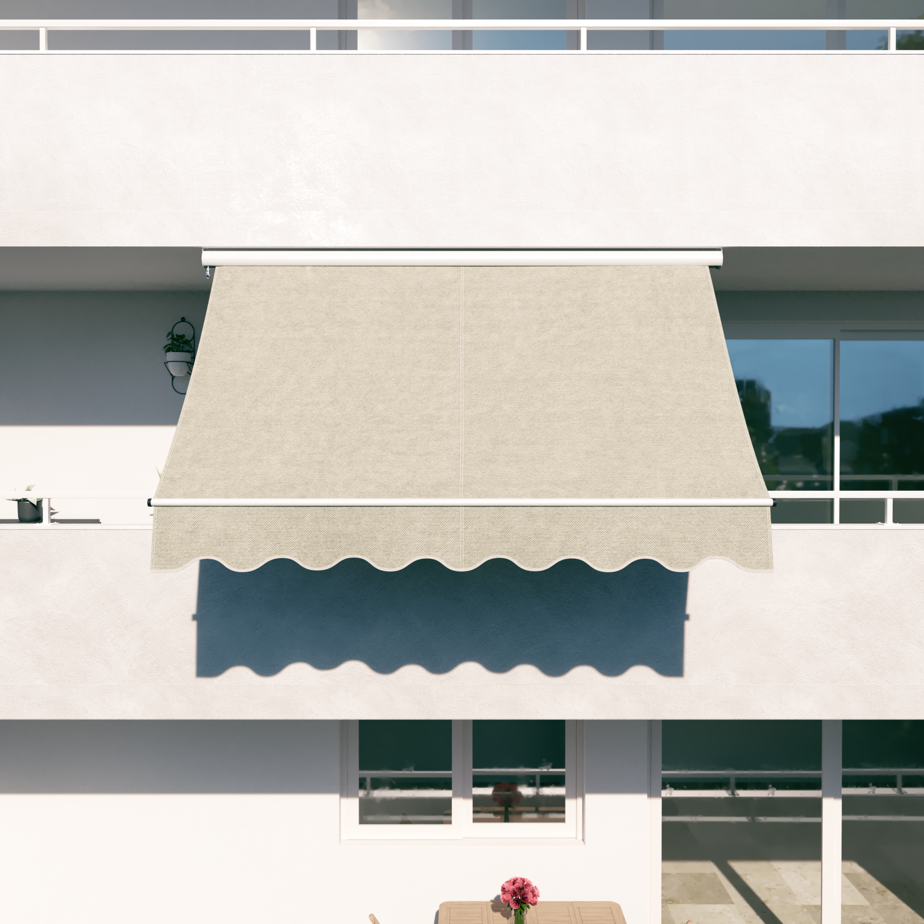Osłona pionowa wspomaga działanie markiz poziomych, a także innych zadaszeń. Markizę z łatwością można zamontować samodzielnie do ściany, do której przylega taras lub balkon - w zestawie są niezbędne uchwyty do montażu ściennego.