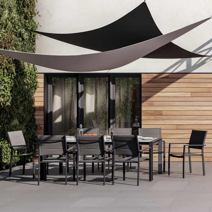 Żagle przeciwsłoneczne są efektowną alternatywą dla markiz poziomych. Wykonuje się je z odpornego na działanie czynników atmosferycznych poliestru 160g/m2. Jest on nie tylko trwały i wytrzymały, ale również szybko wysycha.