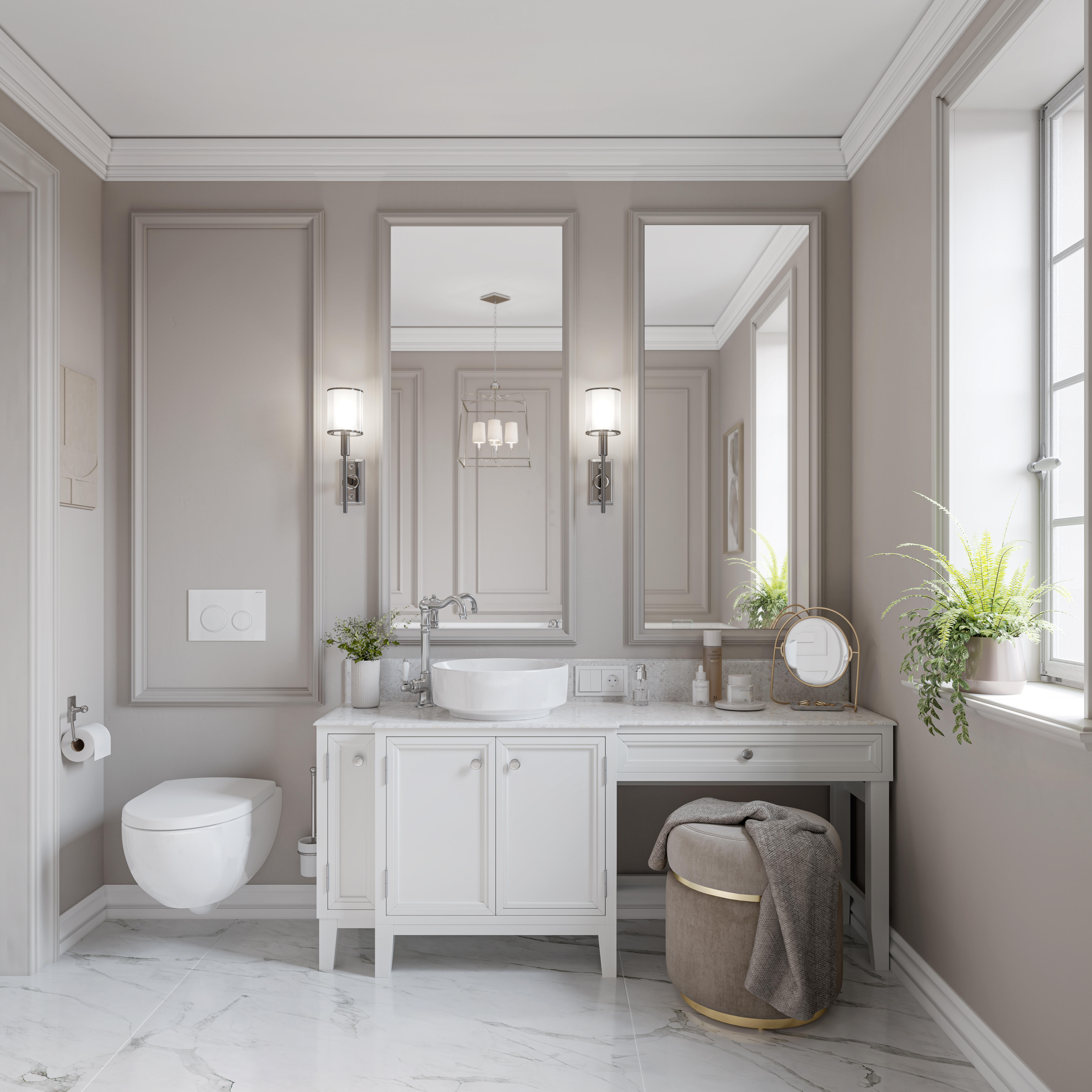 Nowoczesna łazienka z gresem imitującym marmur. Sprawdź naszą inspirację na łazienkę idealną!
