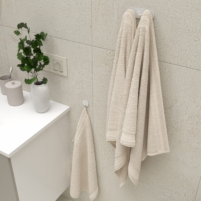 O charakterze wnętrza często decydują detale. W beżowej, harmonijnej łazience sprawdzą się dodatki utrzymane w podobnej palecie barw – ręczniki w odcieniu ecru, naturalne tkaniny, jasne drewno czy piaskowe akcesoria