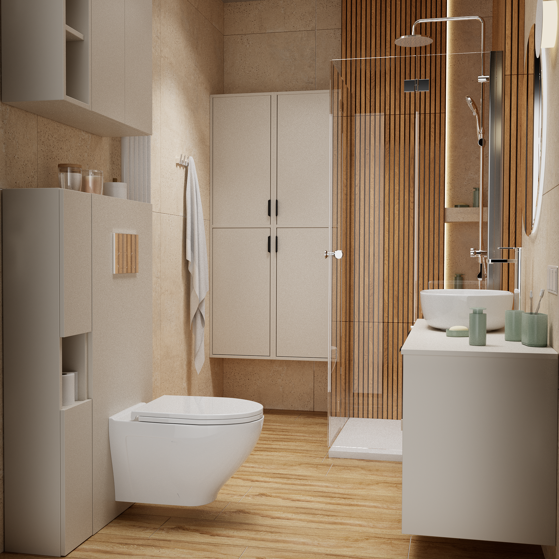 Jeśli chodzi o łazienkowe dodatki, panuje tutaj większa swoboda wyboru. To właśnie one pozwolą przełamać jednolity, jasny wystrój. Możesz zdecydować się na przykład na: