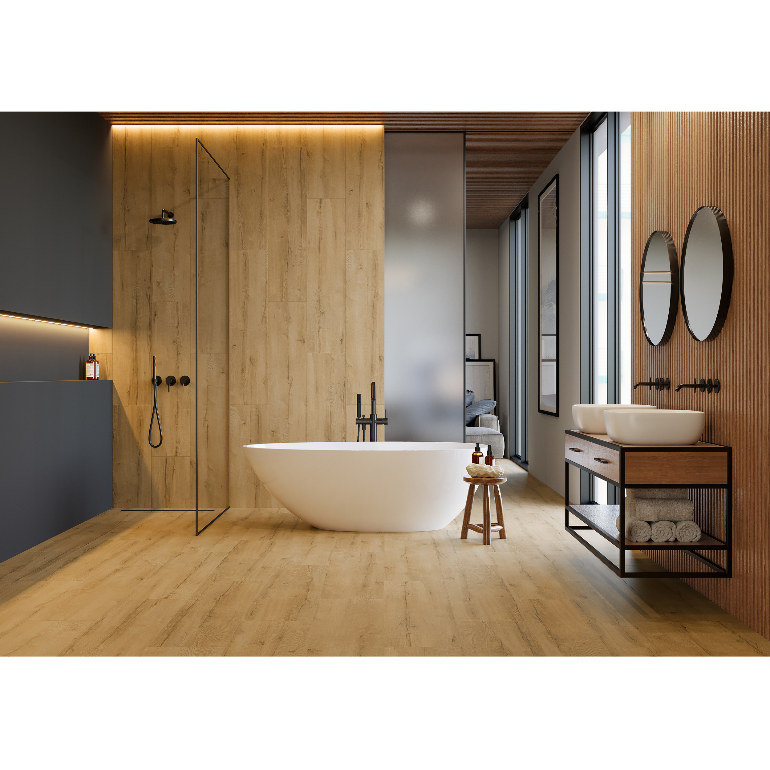 Niezwykle istotnym punktem jest również odprowadzanie wilgoci. Jeśli wentylacja nie będzie działała poprawnie, na ścianach pojawi się grzyb. W dużym salonie kąpielowym warto zastosować wentylator mechaniczny, który skuteczniej niż wywietrznik grawitacyjny, odprowadza nadmiar pary. W tej przestrzeni przyda się też pochłaniacz wilgoci.