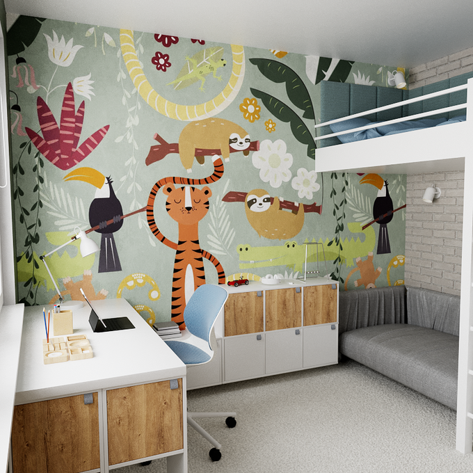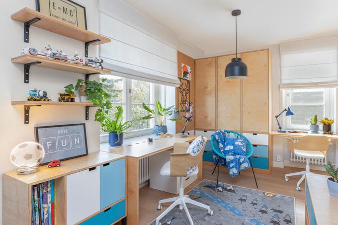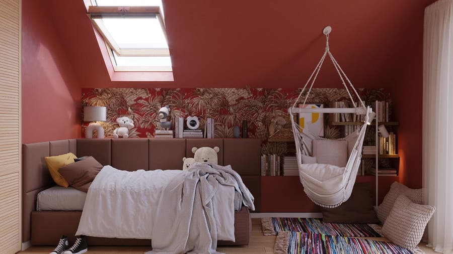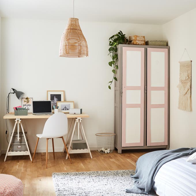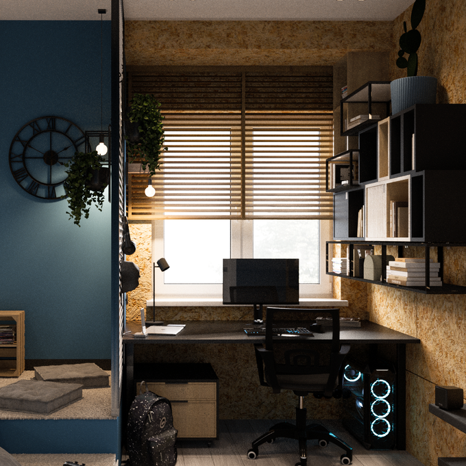Jeśli pokój jest duży, pomyśl o wydzieleniu funkcjonalnych stref. Miejsce do nauki możesz oddzielić od reszty pomieszczenia przy użyciu ścianki działowej lub regału.
