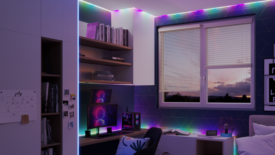 - Najlepsze jest naturalne światło. Jeśli nie możesz ustawić biurka pod oknem, zadbaj o kilka punktów świetlnych, np. lampkę na biurko, kinkiet oraz oświetlenie na suficie.