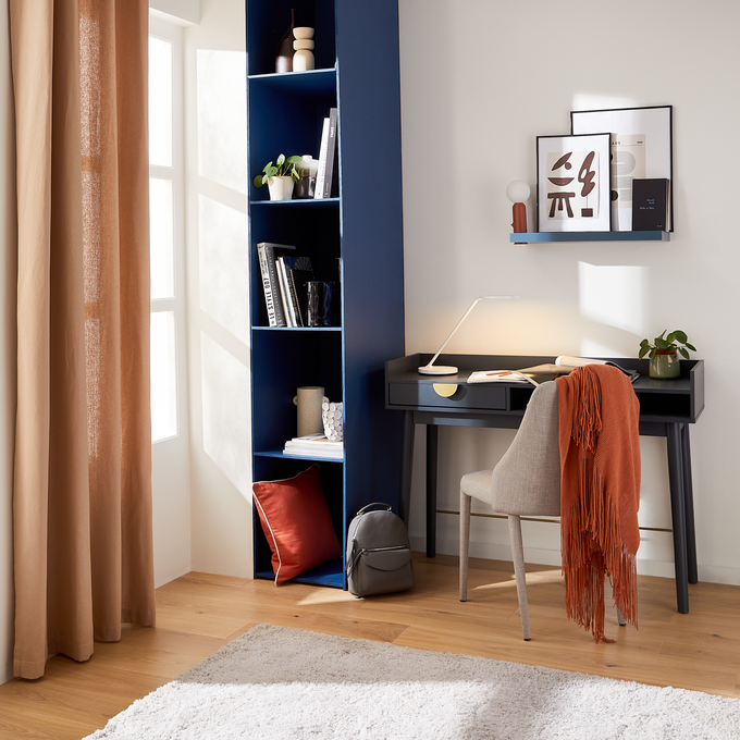 Kluczowym elementem w strefie do nauki jest biurko. Ważne jest, aby miało ono odpowiednią wysokość, dostosowaną do wzrostu dziecka. Blat powinien być dobrze oświetlony – najlepiej naturalnym światłem. Biurko ustaw blisko okna. Jeśli to niemożliwe, koniecznie wybierz lampkę na biurko. Warto wybrać model z możliwością regulacji ramienia, kąta padania światła oraz natężenia jasności. Nie zapomnij także o regulowanym, wygodnym krześle.