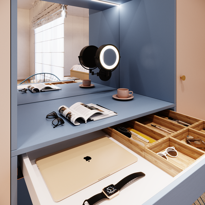 Planując toaletkę pomyśl o oświetleniu tej strefy. Z pewnością przyda Ci się lampa biurkowa lub przenośna.