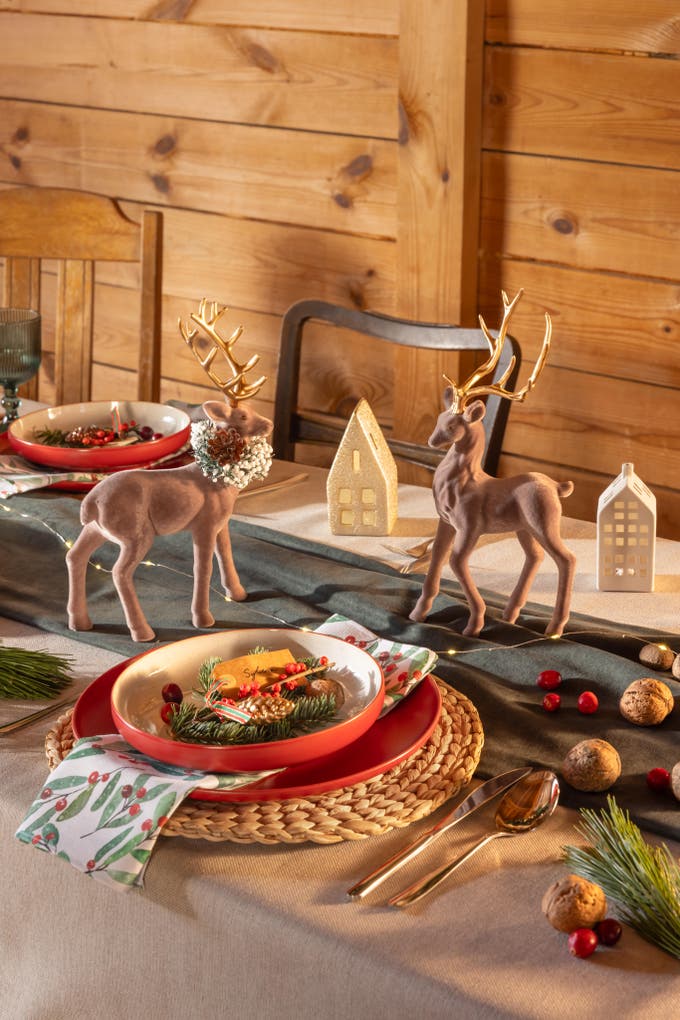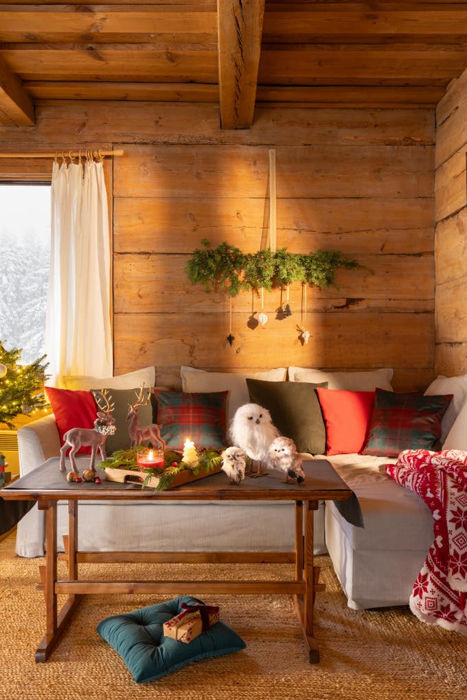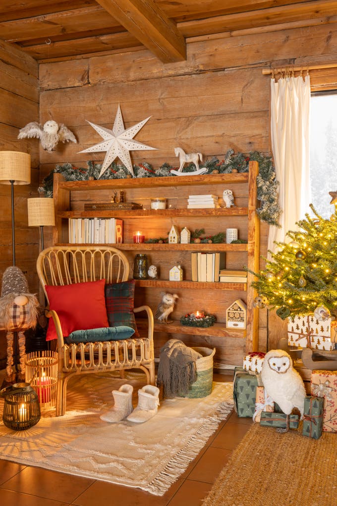Ustawione na parapetach, podłodze i komodzie figurki oraz latarenki tworzą magiczną atmosferę. Jeśli aura na zewnątrz sprzyja, padający śnieg dodatkowo zachwyci swoim urokiem. W stylu Natura najlepiej wykorzystać girlandy, wieńce, ozdoby w kształcie zwierząt oraz miękkie tekstylia w odcieniach beżu, zieleni i czerwieni. Dzięki tym elementom wnętrze będzie urzekać subtelnością i niewymuszoną naturalnością.