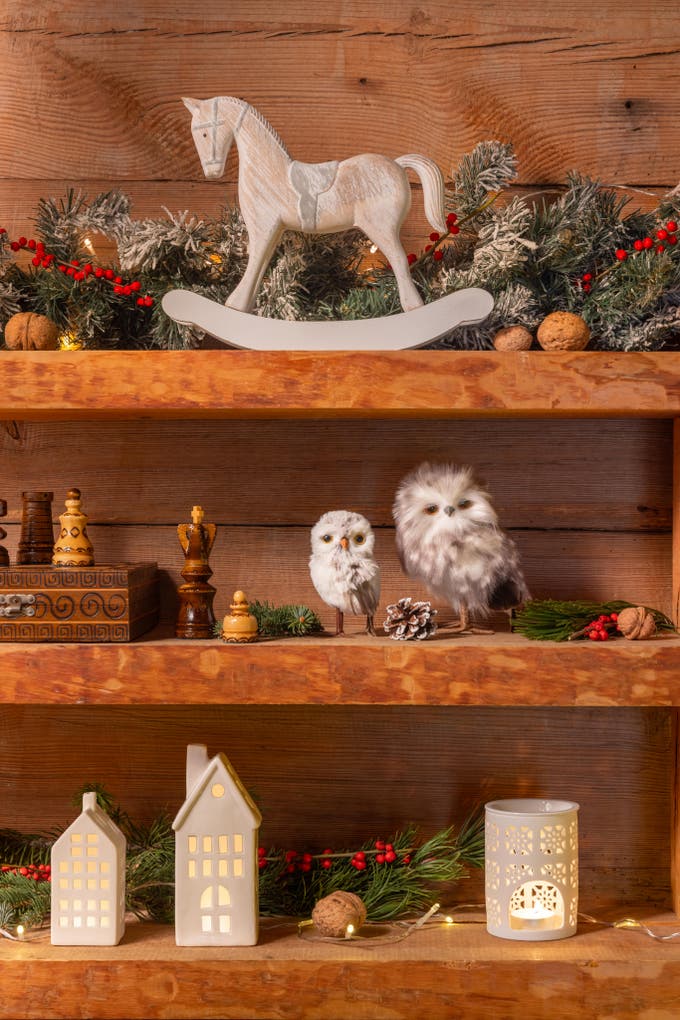 Dekoracje świąteczne w stylu Natura to propozycja dla wielbicieli stonowanych kolorów i leśnych klimatów. Puchate sowy, ozdoby choinkowe w kształcie grzybków i szyszek, świerkowe girlandy oraz skrzaty wprowadzą do wnętrza atmosferę magicznego, zimowego gaju. Zobacz, jak ozdobić swój dom na Święta!