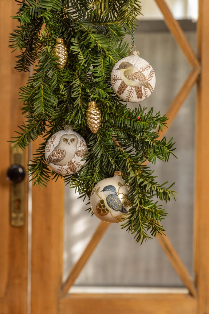 W tym stylu królują ozdoby wykonane z naturalnych materiałów, takich jak drewno, szyszki, suszone owoce czy pióra. Na gałązkach doskonale będą się prezentować także dekoracje z filcu oraz materiałowe zawieszki, np. w kształcie skrzatów.