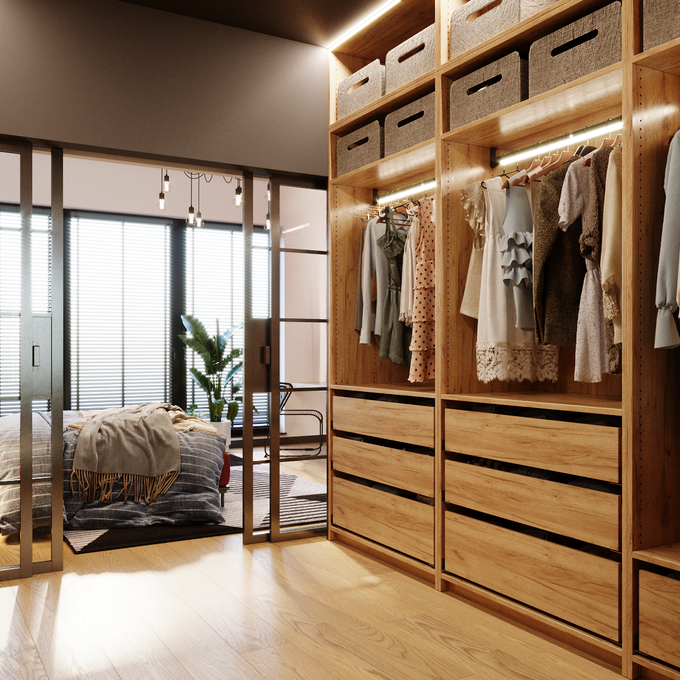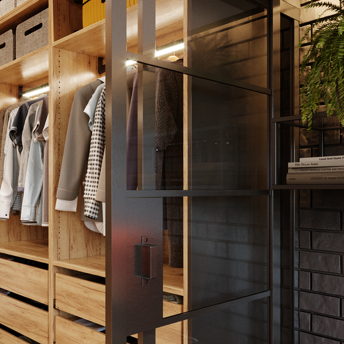 W garderobie postaw na kilka źródeł światła. Światło główne oświetli całe pomieszczenie i może stanowić doskonały element dekoracyjny. Dodatkowe światła ledowe, montowane w szafach lub przy wieszakach pozwolą Ci na dostrzeżenie całej zawartości szafy. W razie potrzeby rozważ też dodatkowe światła, montowane np. na ścianach czy bokach szaf.