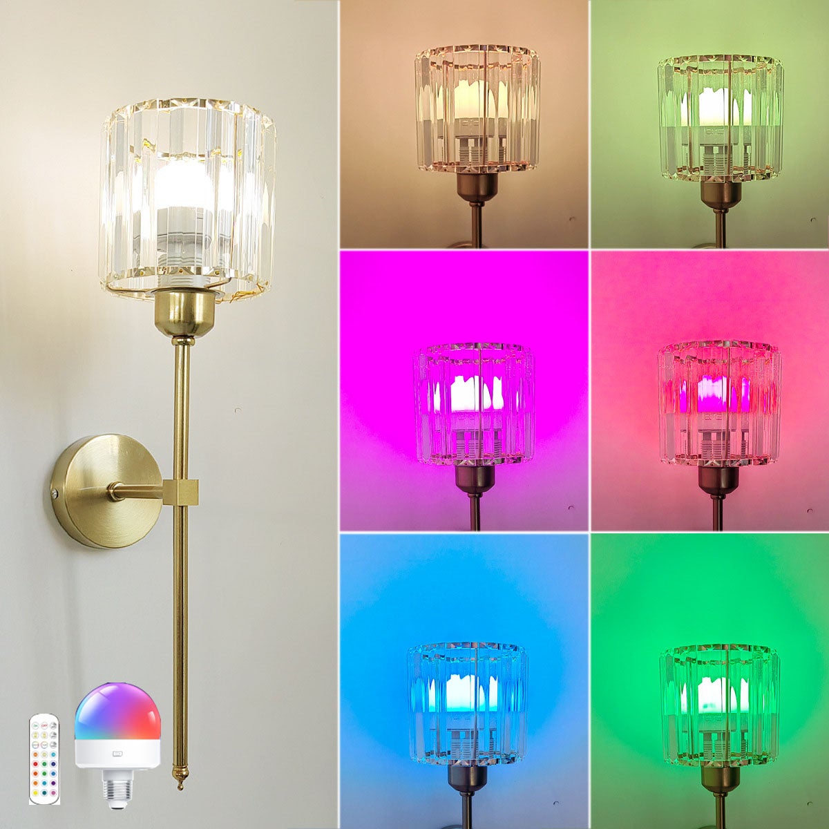 ⭐[Wymagania dotyczące żarówki w kinkiecie]: Ta kryształowa lampa ścienna w kolorze czystego złota jest przeznaczona do żarówki E27 i jest dostarczana z żarówką akumulatorową RGBCW oraz pilotem.