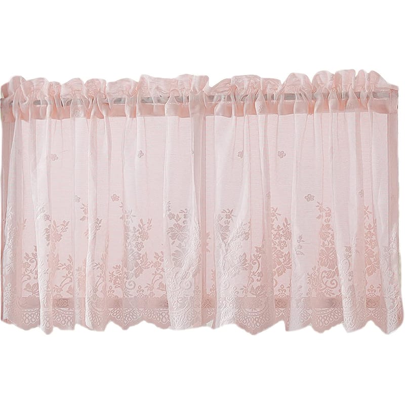 1. Zasłona tiulowa, zasłona z tiulu żakardowego, zasłona w stylu rustykalnym, karnisz nie jest dołączony, różowa (74 cm szer. x 90 cm wys.)