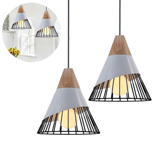 2 x Nowoczesny żyrandol z metalową klatką - Regulowana lampa wisząca 1,5 m - Do kuchni, salonu - Ø25 cm, Żarówka E27 nie w zestawie