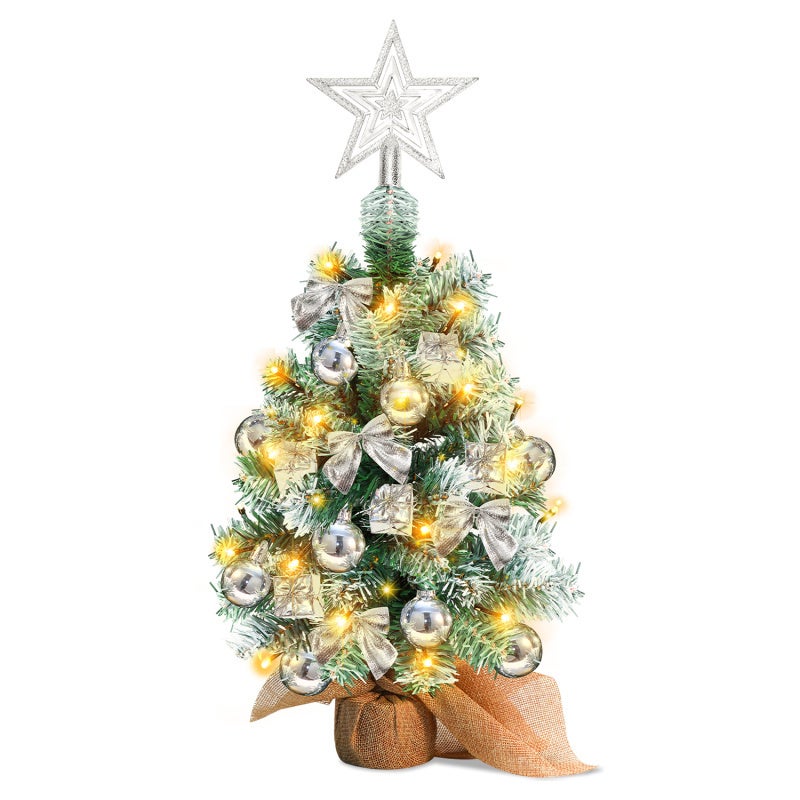 40 cm choinka stołowa, miniaturowe sztuczne choinki ze światłem, czubkiem i ozdobami choinkowymi, ozdoby świąteczne, srebro