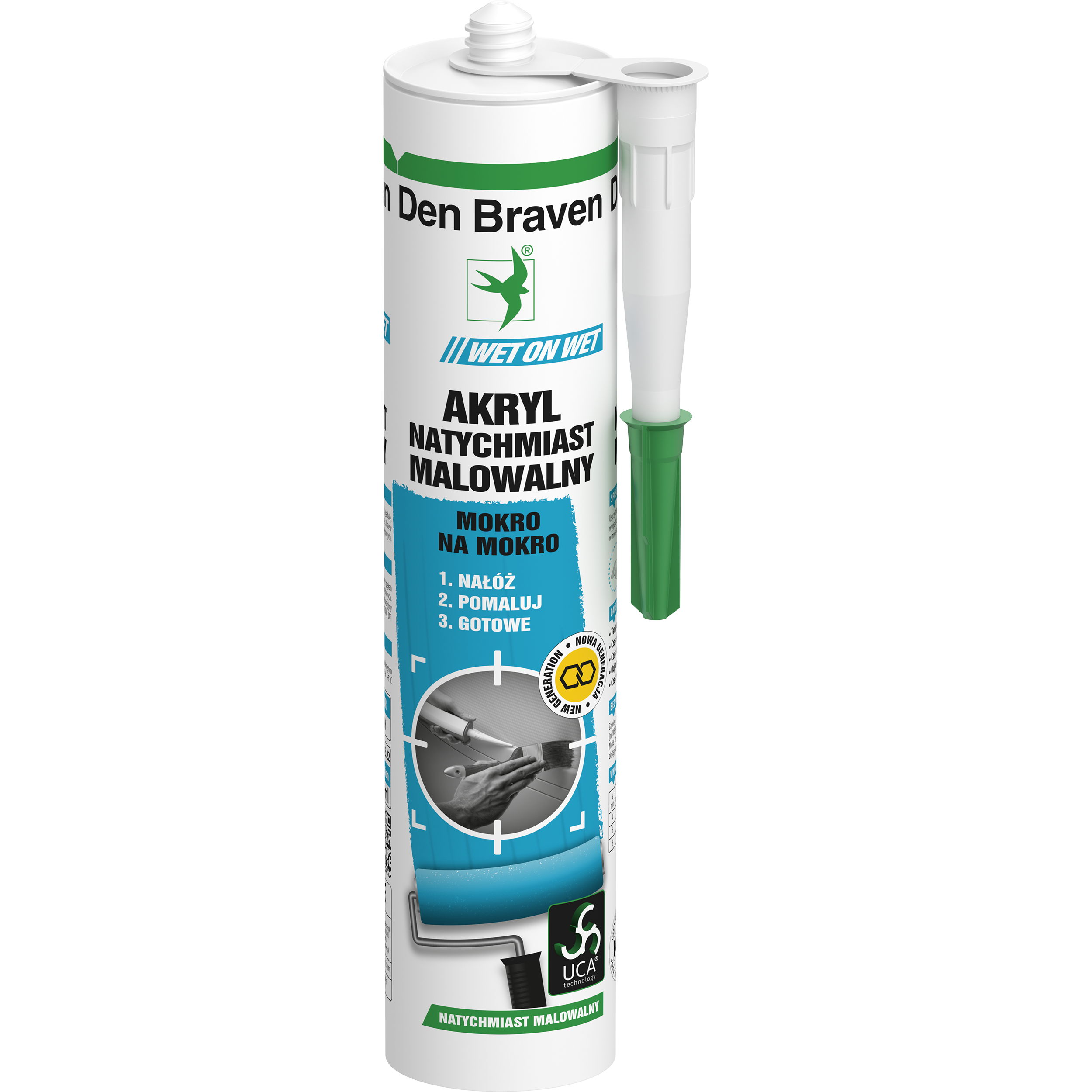 Natychmiast malowany metodą mokro na mokro, plastyczno-elastyczny, nie powoduje spękań i przebarwień farby