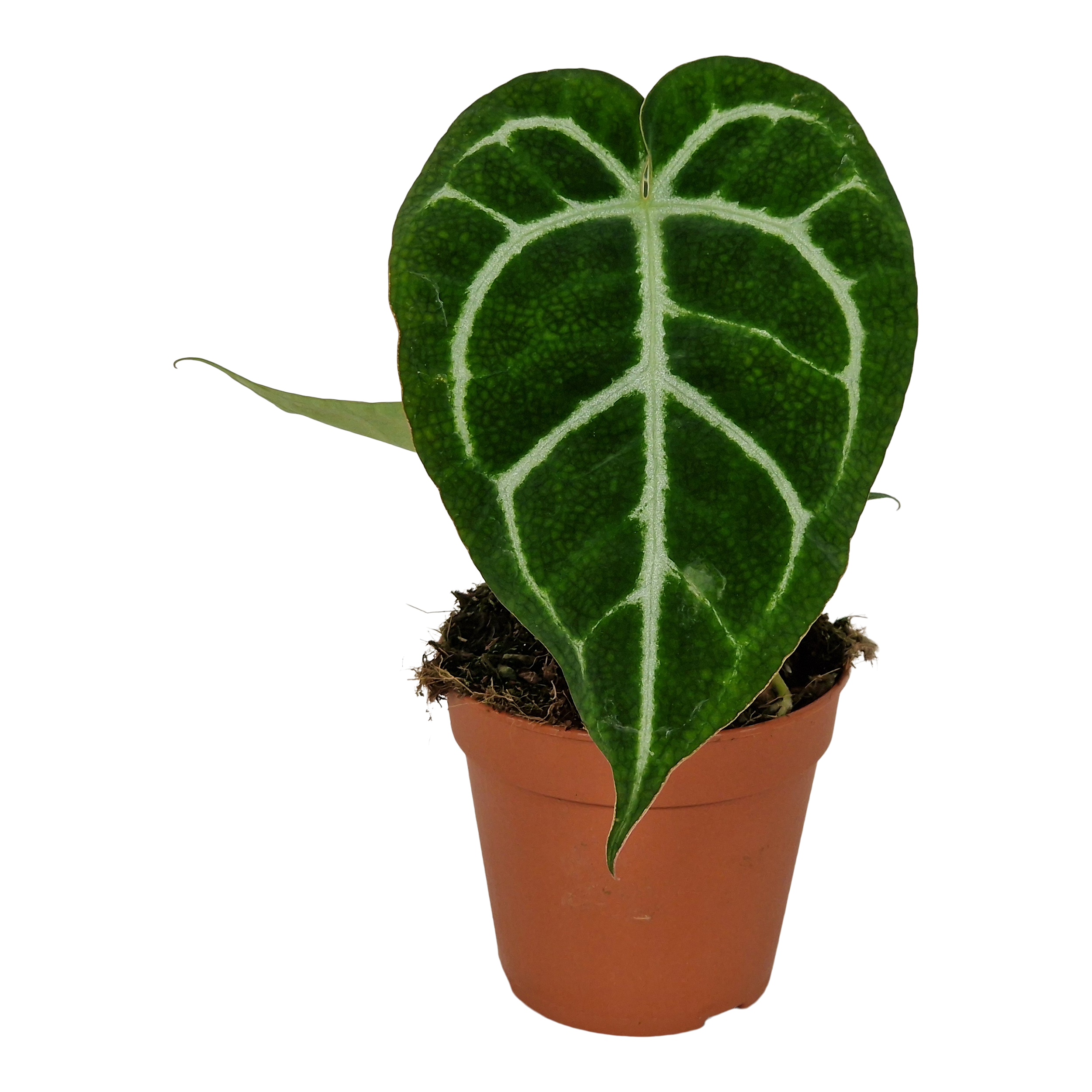 Anturium Crystallinum to niezwykle dekoracyjna roślina, osiągająca docelową wysokość od 40 do 50 cm. Charakteryzuje się pięknymi, sercowatymi liśćmi, które są intensywnie zielone i mają wyraźne, białe żyłkowanie, co sprawia, że roślina wyróżnia się w każdym wnętrzu. Anturium to preferuje jasne, ale rozproszone światło, co pozwala mu na zdrowy wzrost i obfite liści. Kluczowe jest także utrzymanie odpowiedniej wilgotności — roślina lubi podłoże lekko wilgotne, dlatego warto podlewać ją regularnie, zwracając uwagę na nadmiar wody. Anturium jest rośliną, która doskonale sprawdza się zarówno w domowych aranżacjach, jak i w biurach, dodając im elegancji oraz świeżości. Warto również pamiętać, że liście tej rośliny są nietoksyczne, co czyni ją bezpiecznym wyborem dla rodzin z dziećmi i zwierzętami.