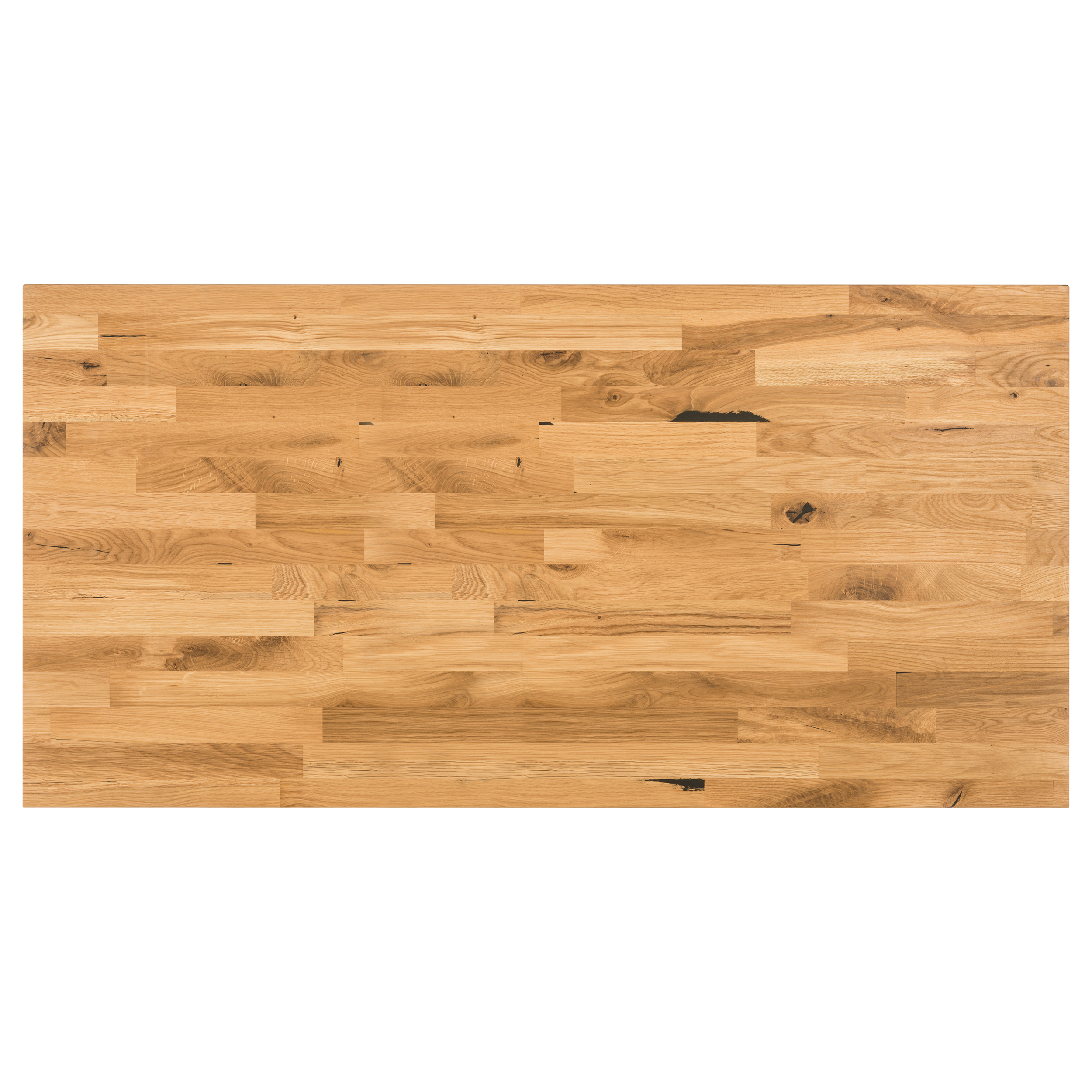 Blat drewniany dębowy, wykonany z listew dębowych łączonych na długości, dzięki czemu jest stabilny i wytrzymały. Blat charakteryzuje się urozmaiconym rysunkiem i kolorystyką słoi oraz pęknięciami i sękami wypełnionymi czarną szpachlą. Blat wykończony olejem bezbarwnym UV. Drewno klejone pozwala na jego prostą oraz wielokrotną renowację. Prawidłowo wykonywana konserwacja pozwoli na zachowanie walorów użytkowych i estetycznych przez długie lata. Przed montażem należy zapoznać się z kartą informacyjną blaty drewniane dołączoną do produktu.