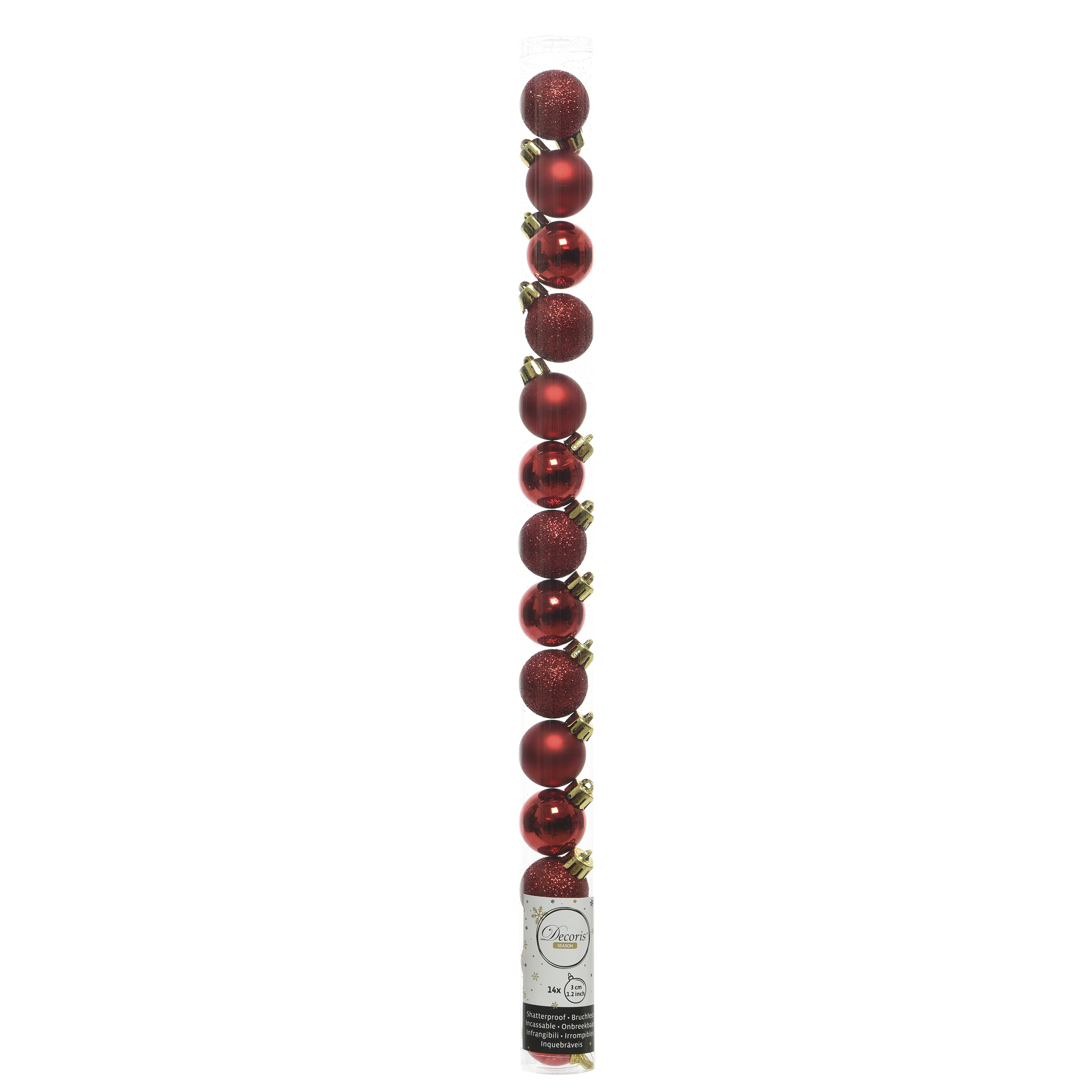 Bombki plastikowe 3 cm 14 sztuk czerwone Decoris