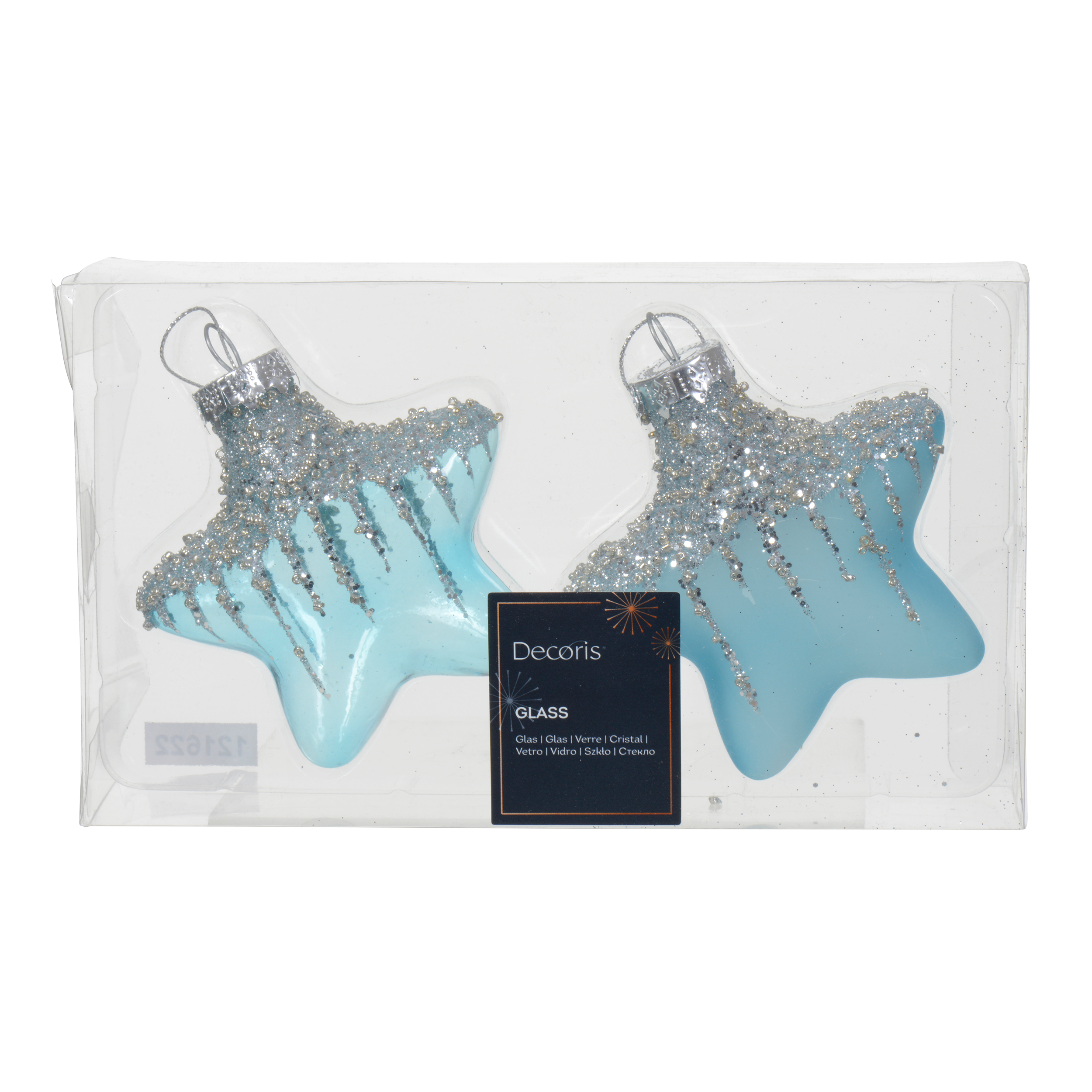 Bombki szklane 11.8cm niebieskie gwiazdki