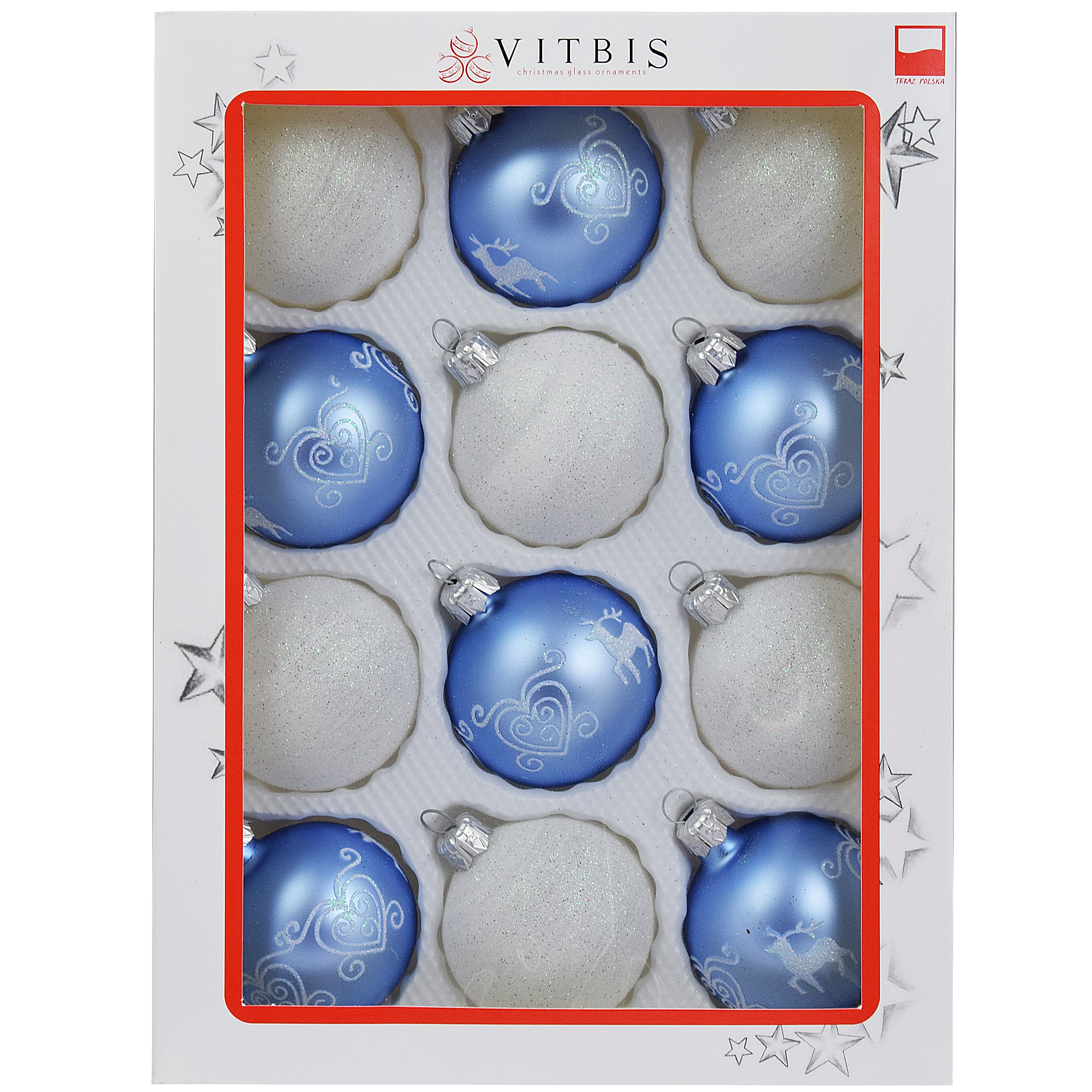 Bombki szklane 6 cm 12 sztuk ręcznie malowane różne wzory Vitbis