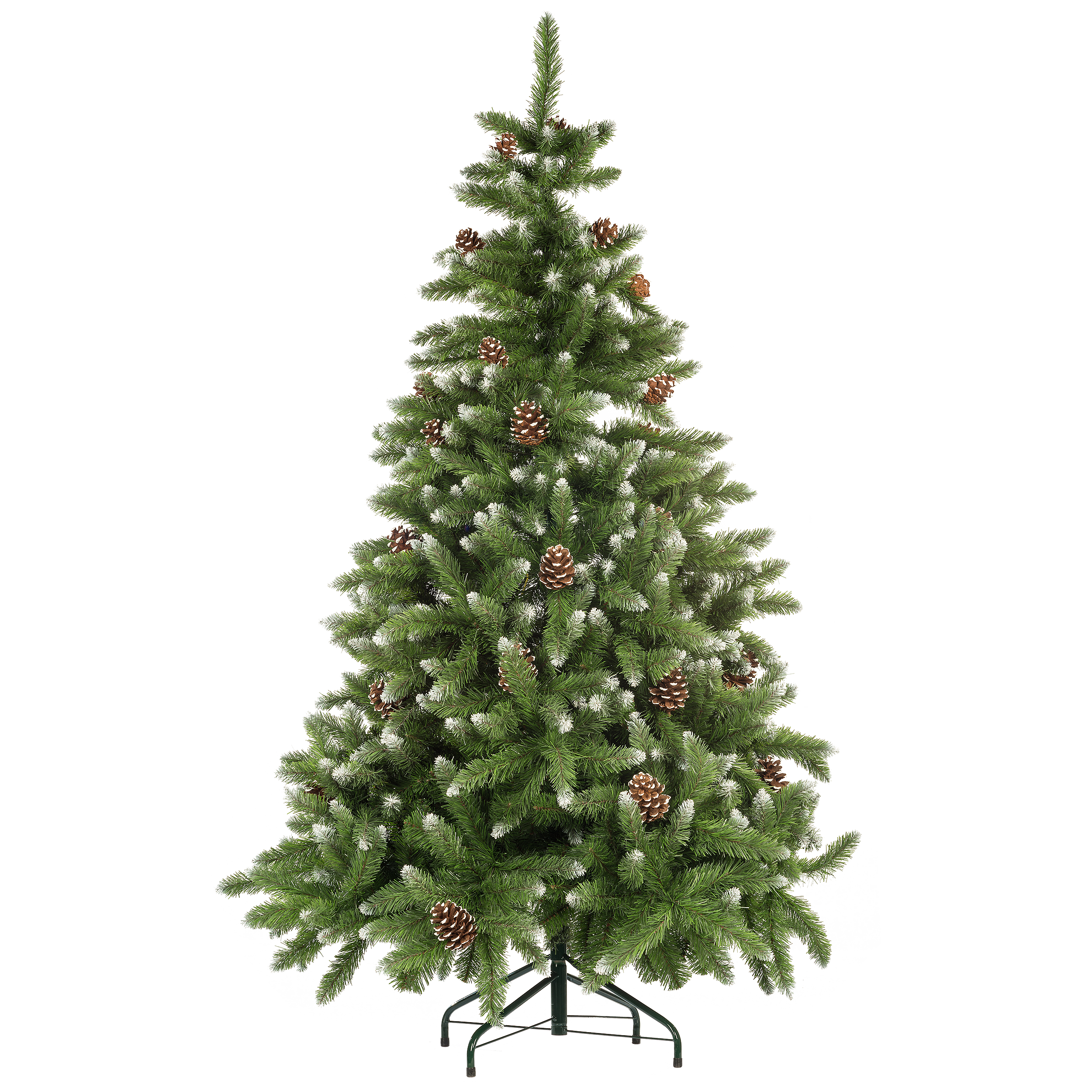Sztuczna choinka OSLO to drzewko bożonarodzeniowe w tradycyjnym zielonym kolorze. Choinka udekorowana szyszkami będzie doskonałą ozdobą Świąt Bożego Narodzenia, a białe końcówki dodają jej uroku i sprawiają, że wygląda jakby była oprószona śniegiem. Choinka charakteryzuje się regularnym kształtem oraz dużą gęstością, dzięki czemu wygląda zjawiskowo. Sztuczna choinka jest bardzo praktyczna - nie gubi igieł oraz jest wielokrotnego użytku.