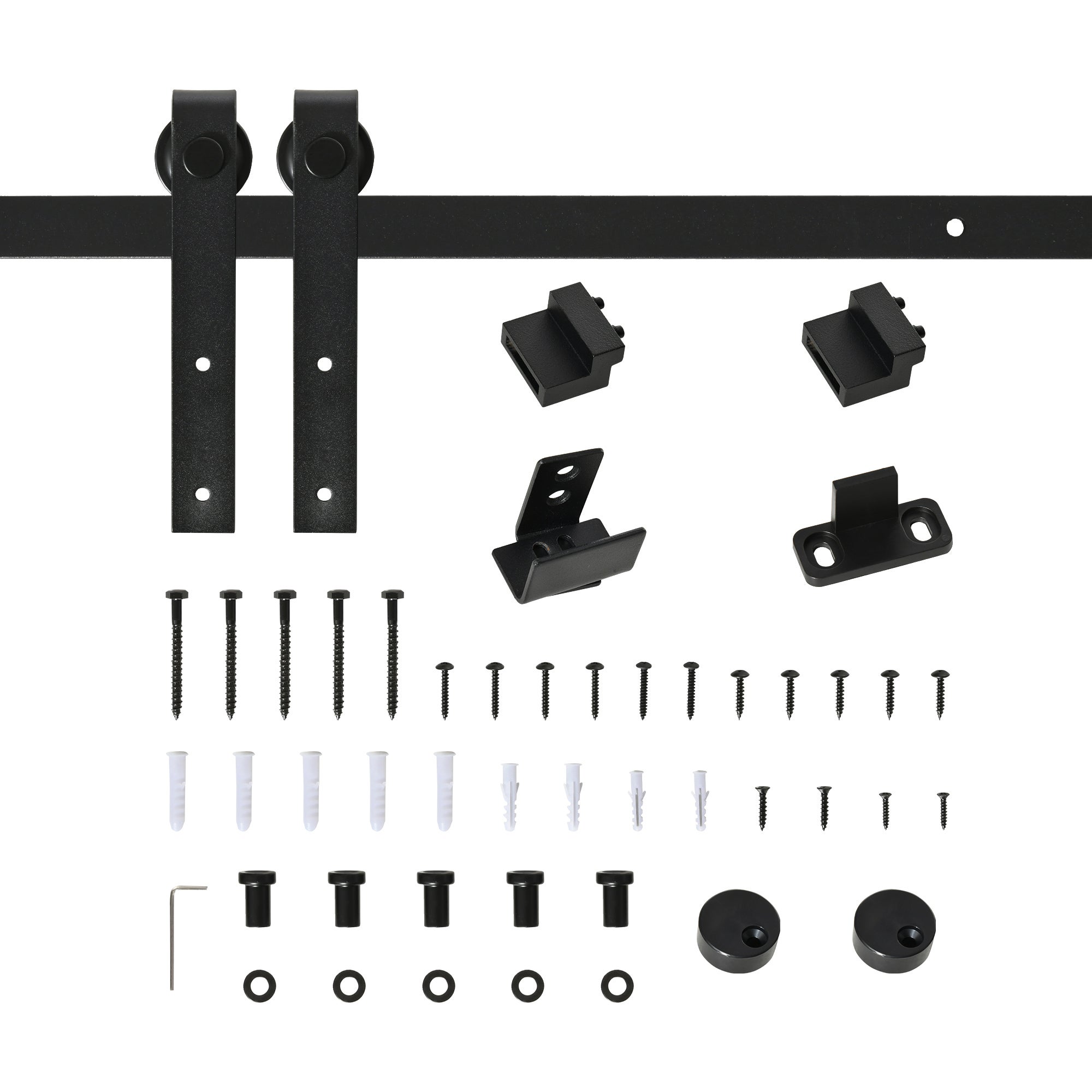 Czarny zestaw okuć do drzwi przesuwnych ze stali węglowej 200x18 cm, z akcesoriami do drzwi drewnianych, idealny do nowoczesnych pomieszczeń