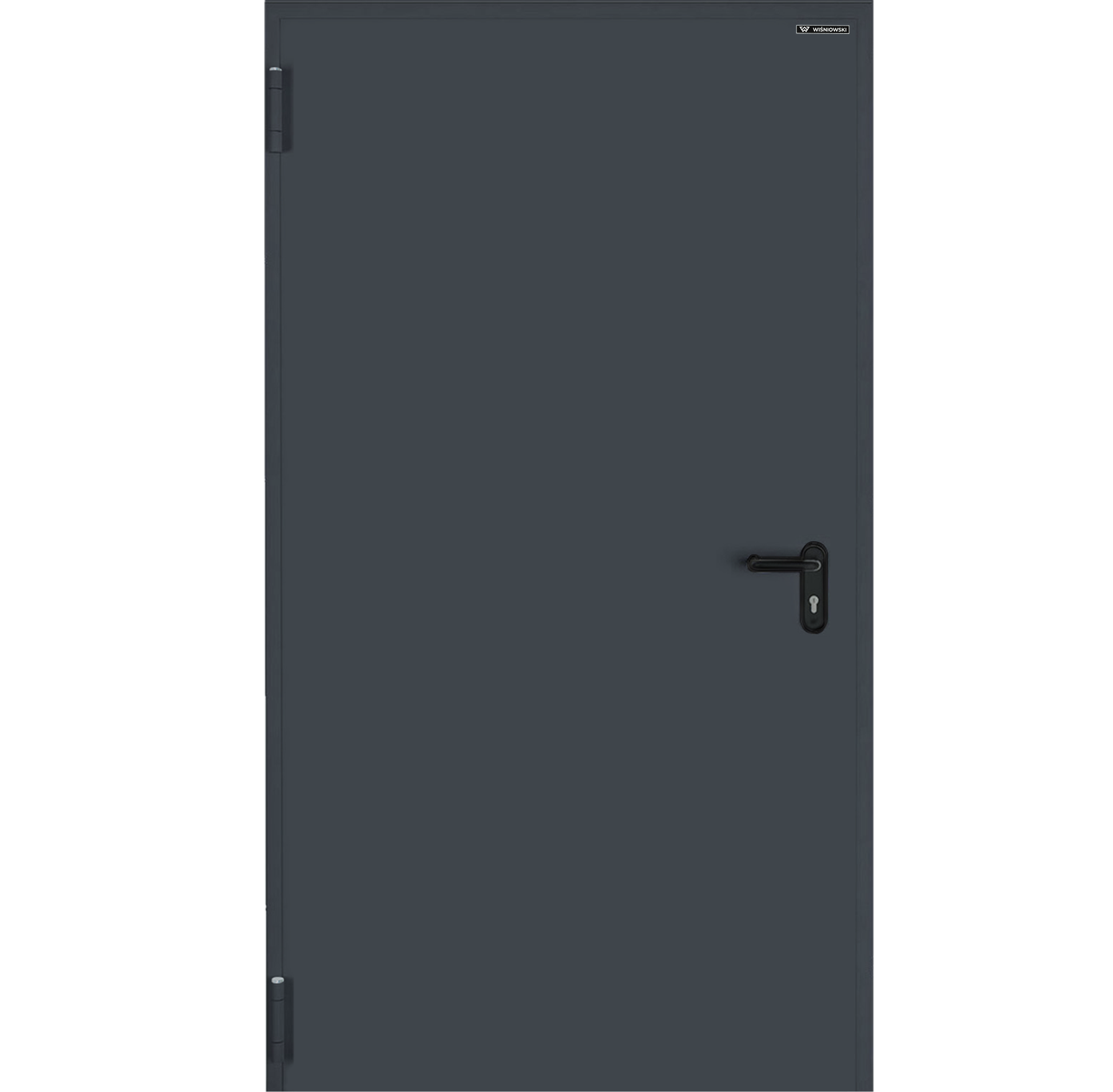Drzwi przeciwpożarowe antracytowe RAL 7016 90 lewe otwierane na zewnątrz marki Wiśniowski zapewniają maksymalne bezpieczeństwo i trwałość w ekstremalnych warunkach. Drzwi wykonane są w klasie odporności ogniowej: EI30. Drzwi zapewniają bezawaryjne użytkowanie i niezwykłą trwałość na uszkodzenia drzwi zapewniają: sztywna stalowa konstrukcja i połączenia spawane. Jest to ważne szczególnie dla drzwi intensywnie użytkowanych montowanych w obiektach użyteczności publicznej. Drzwi Technical ppoż. wyposażone są standardowo w jeden zamek zapadkowo-zasuwkowy z wkładką z trzema kluczami, dwa bolce przeciwwyważeniowe zabezpieczające przed zdjęciem skrzydła lub wyważeniem drzwi oraz klamkę z polipropylenu z rdzeniem stalowym. Drzwi wyposażone są w dwa zawiasy z regulacją pionową na skrzydło, w tym jeden samozamykający.