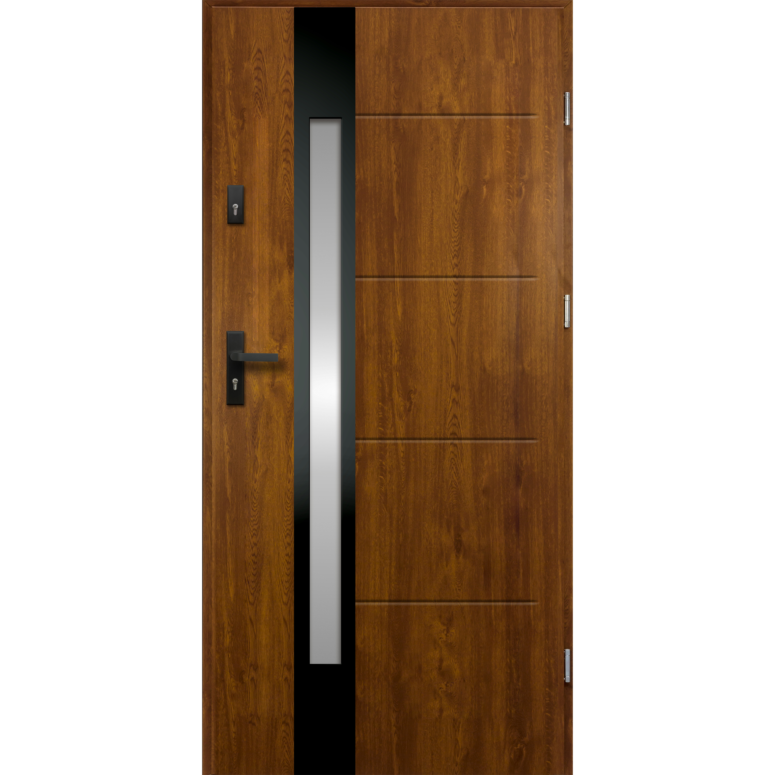 Drzwi zewnętrzne stalowe wejściowe Ariadna złoty dąb-czarne 90 Prawe Ok Doors Trendline