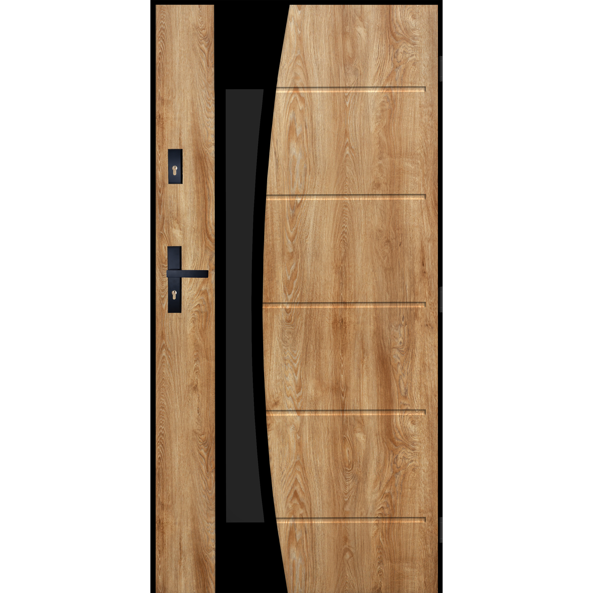 Drzwi zewnętrzne stalowe wejściowe Lyon Black Dąb Turner 90 prawe Pantor