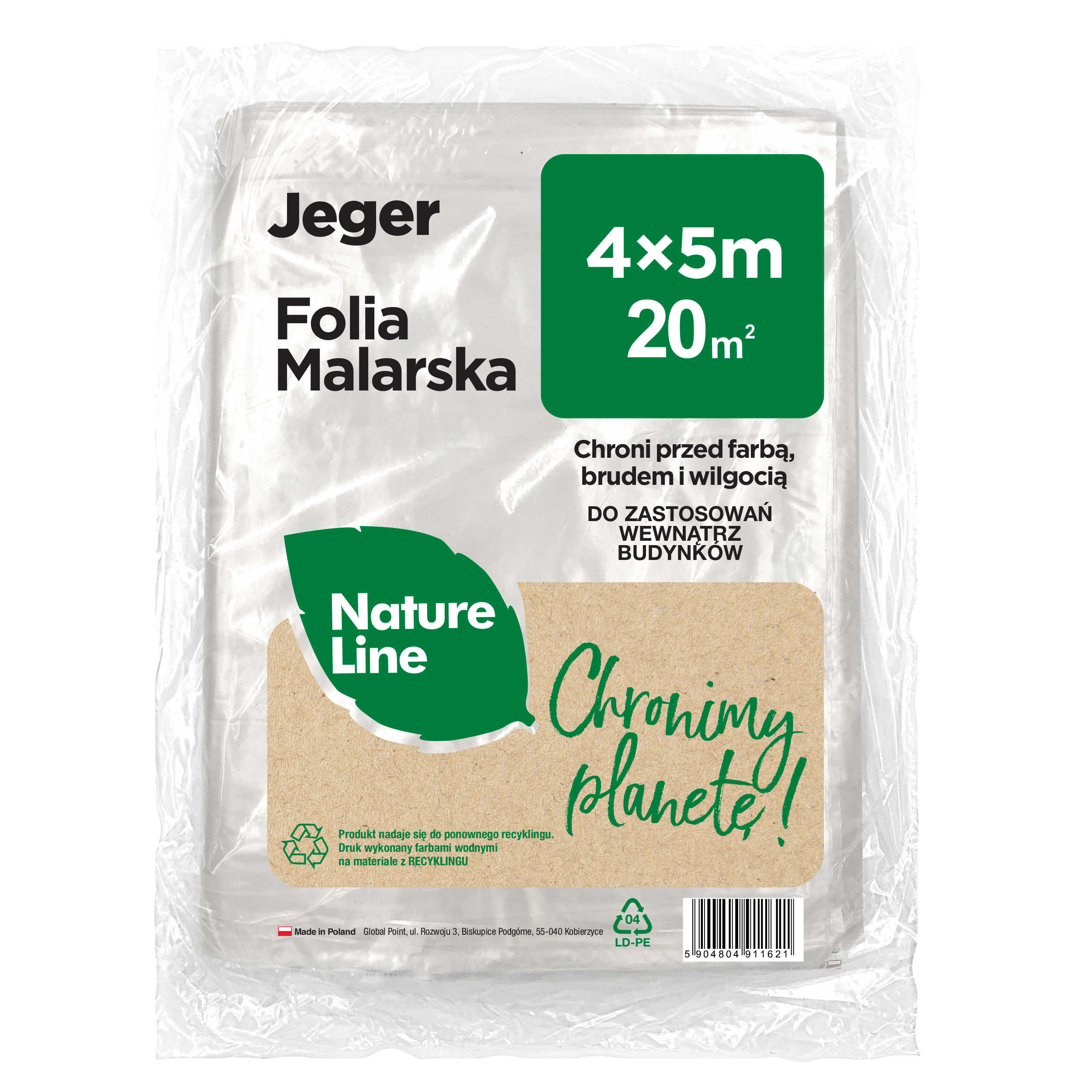Jeger Natura folia malarska o wymiarach 5x4m idealnie chroni przed farbą, brudem i wilgocią.