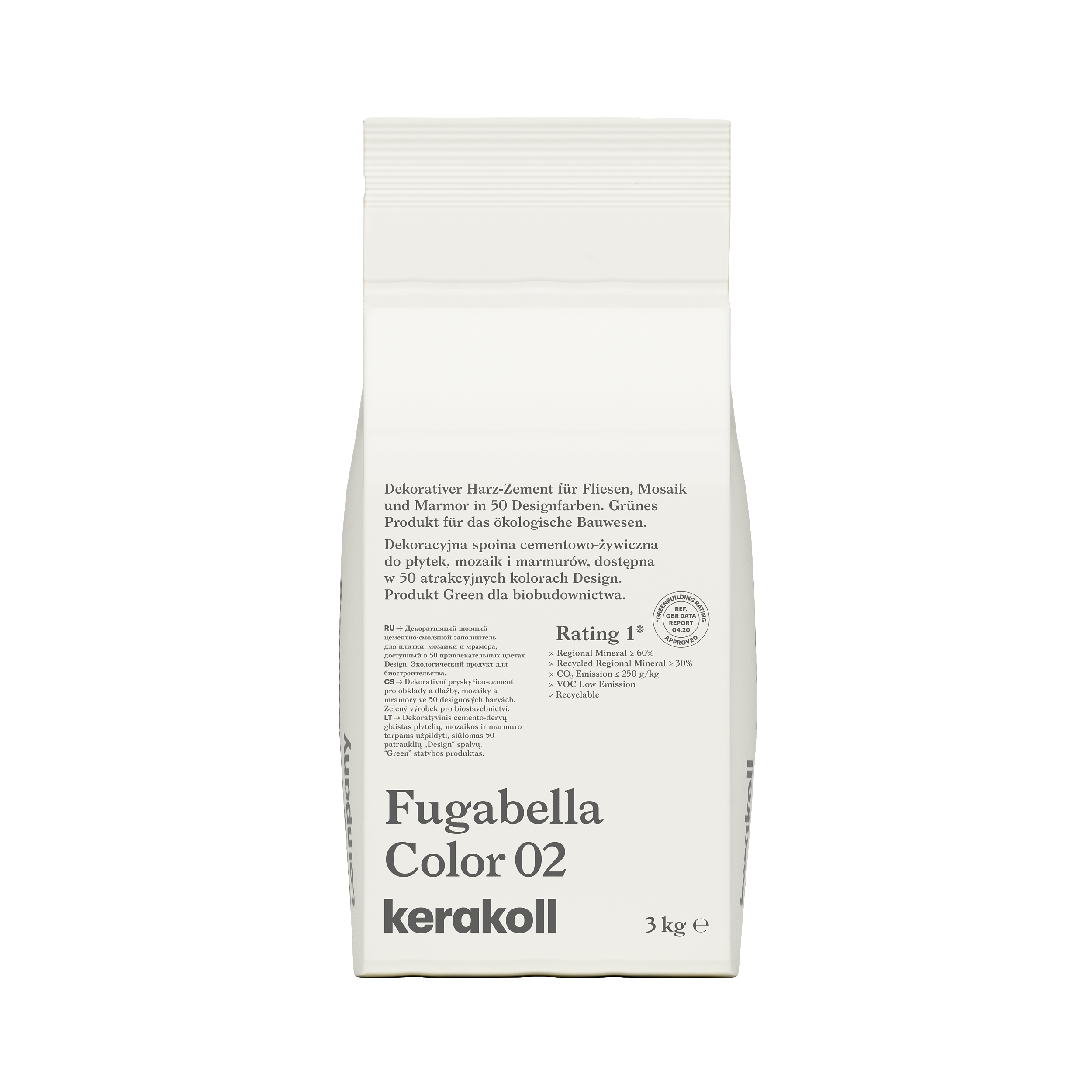 Fugabella® Color to dekoracyjna spoina cementowo‑żywiczna do płytek, mozaki i kamieni naturalnych. Dostępna w 50 atrakcyjnych kolorach Design. Charakteryzuje się niską chłonnością wody, podwyższoną odpornością na zabrudzenia i stabilnością koloru.
