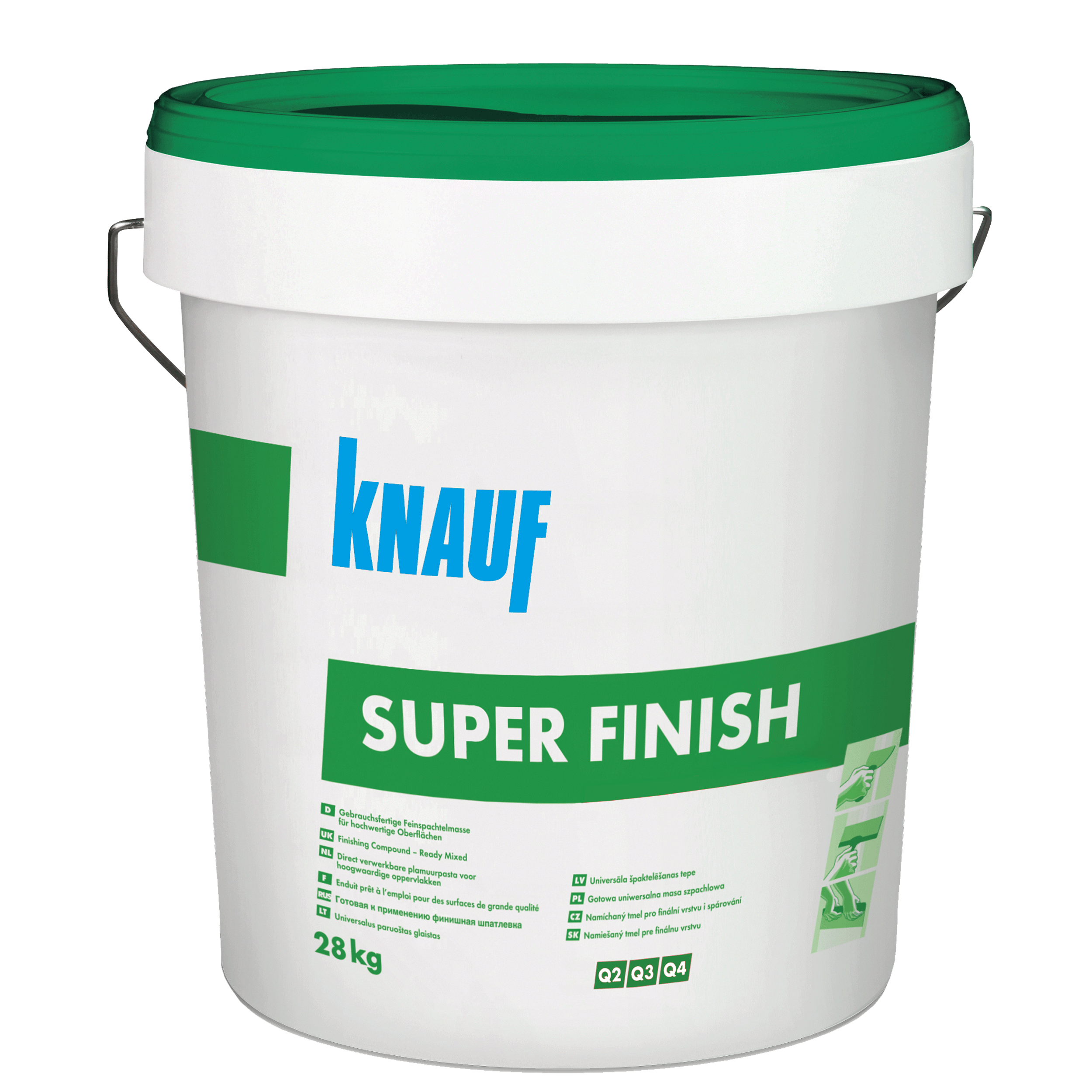 Ściany i sufity idealnie gładkie! To proste. Wystarczy zastosować masę szpachlową Knauf Super Finish. Gotowa do użycia zaraz po otwarciu wiaderka. Nakłada się bez większego wysiłku, łatwo się szlifuje. Możliwość nakładania agregatem przyspiesza pracę. Dobrze przylega do podłoża. Doskonale sprawdzi się do wygładzania ścian i sufitów otynkowanych oraz z płyt gipsowo-kartonowych, a nawet lamperii. Masa z upływem czasu twardnieje, co sprawia, że ściany i sufity są trwałe i odporne na uszkodzenia.