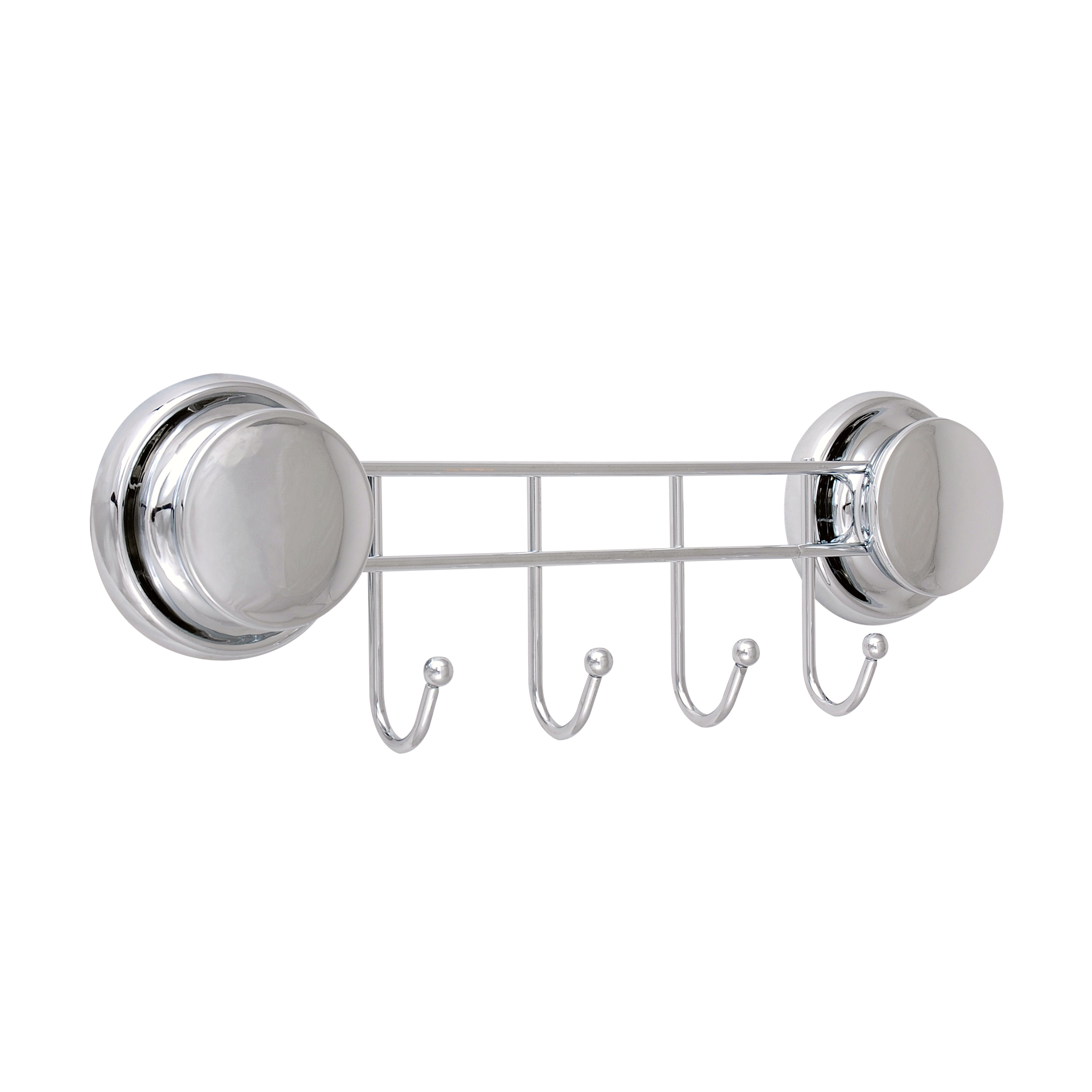 Praktyczny wieszak łazienkowy z 4 haczykami wykonany z chromowanej stali. Idealny do wieszania różnego rodzaju przyborów łazienkowych. Mocowany do ściany na przyssawkę, sprawdzi się na matowych, porowatych gresach - struktura przyssawki przypomina bardzo gęsty żel i tym samym szczelnie wnika w porowate powierzchnie. Jest skuteczna również na glazurach, laminatach, lodówkach, szkle i innych gładkich powierzchniach.