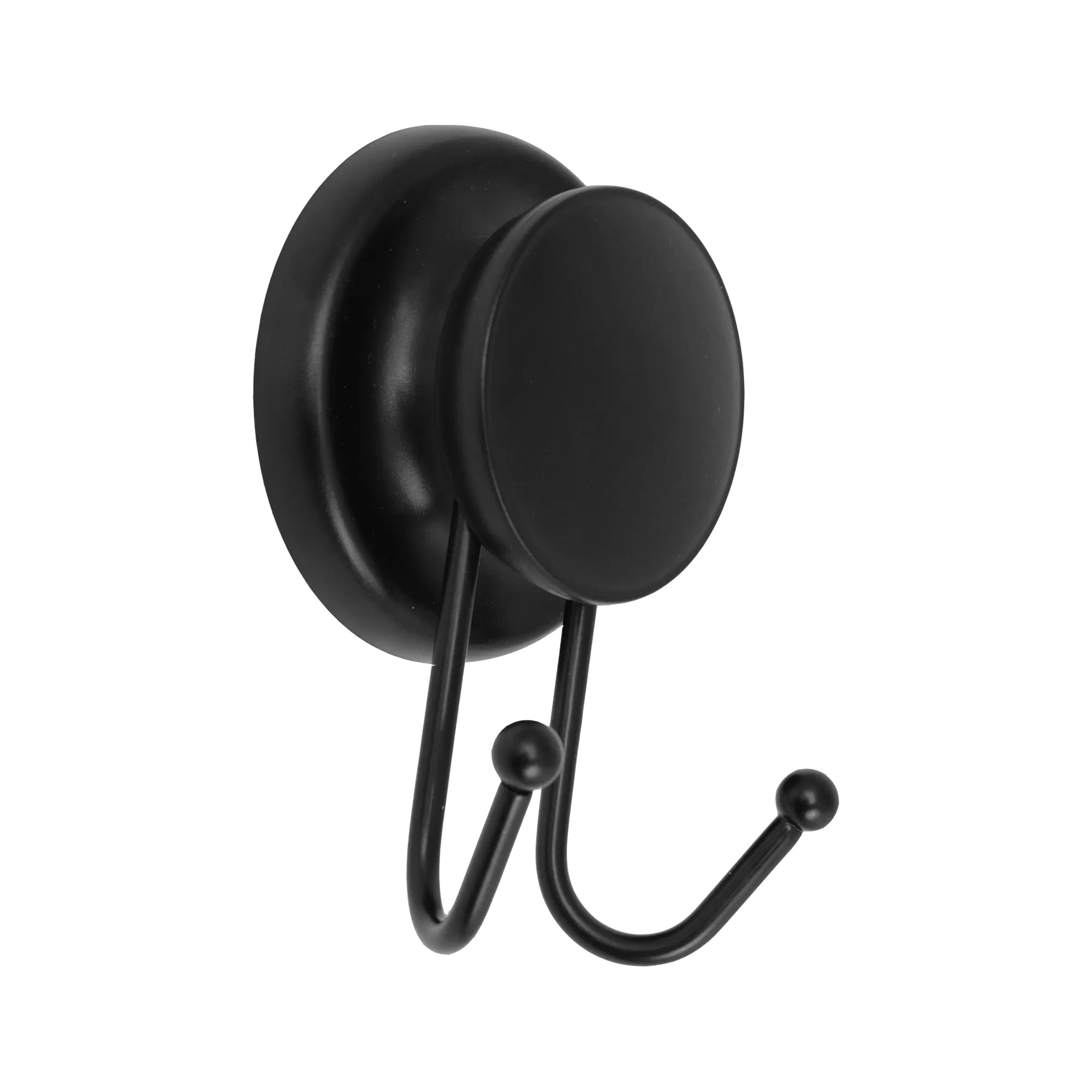 Haczyk podwójny, stal malowana proszkowo. Mocowany do ściany na przyssawkę. Sprawdzi się na matowych, porowatych gresach - struktura przyssawki przypomina bardzo gęsty żel i tym samym szczelnie wnika w porowate powierzchnie. Jest skuteczna również na glazurach, laminatach, lodówkach, szkle i innych gładkich powierzchniach.