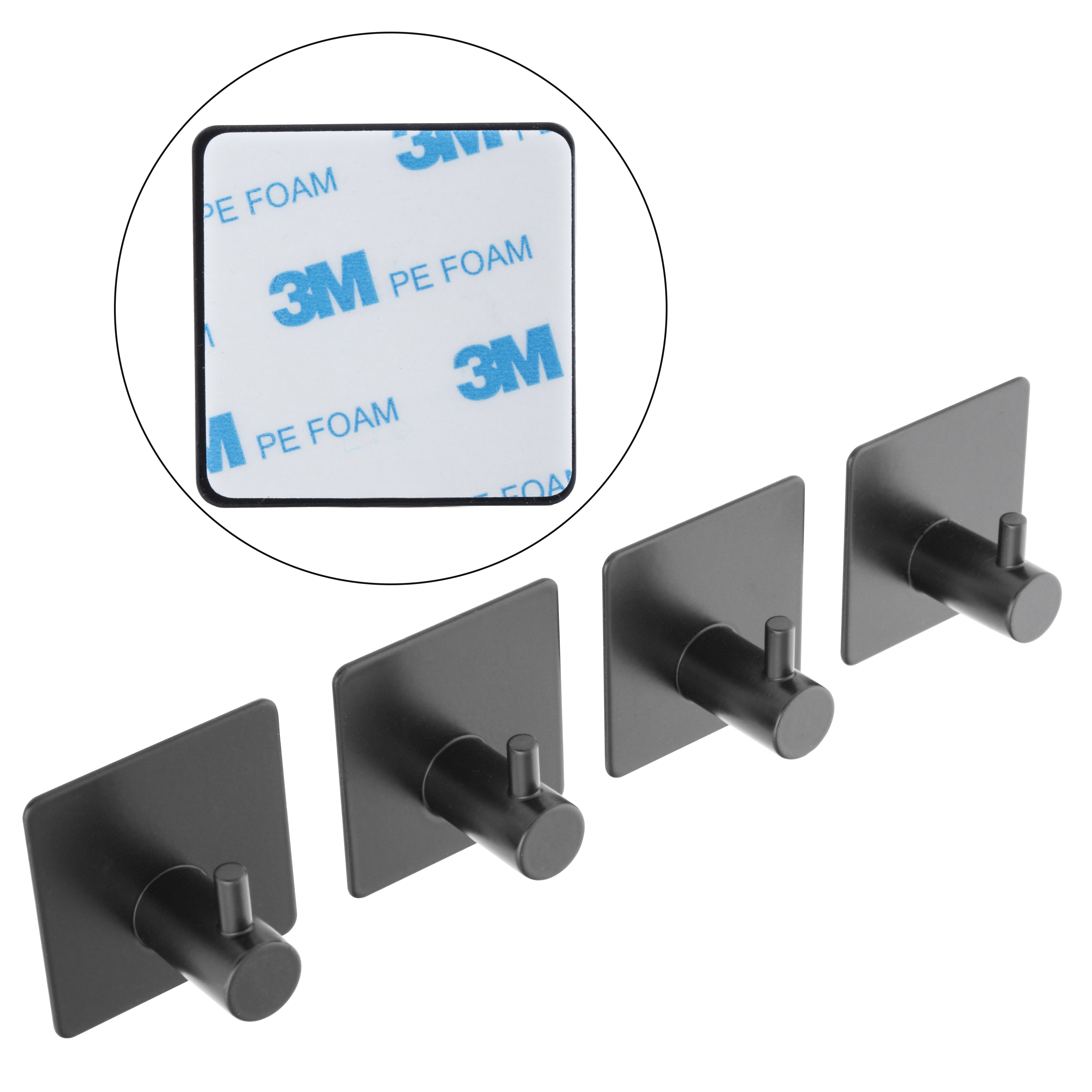Haczyk samoprzylepny, zestaw czterech sztuk, stal malowana proszkowo na czarno. Haczyki mocowane są na taśmę 3M dzięki czemu montaż odbywa się bezinwazyjnie. Wystarczy przykleić wieszak za pomocą bardzo mocnej taśmy, która jest w zestawie. Haczyki idealnie sprawdzą się w pokoju, łazience, ale również w kuchni czy przedpokoju.