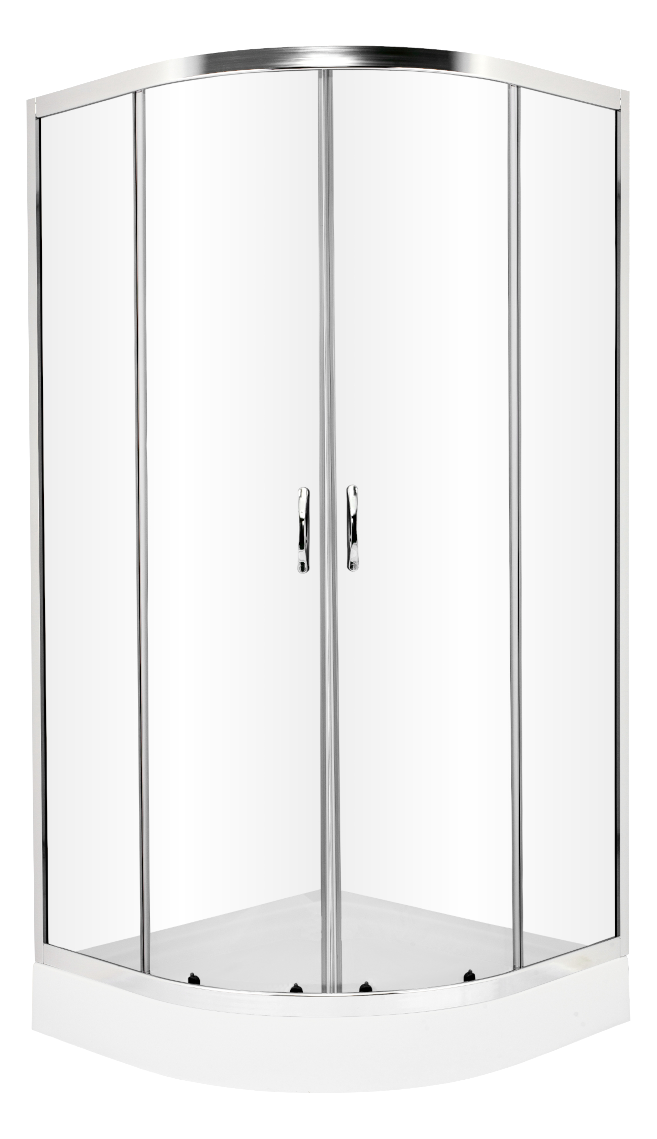 Kabina prysznicowa półokrągła Kama marki Liveno w komplecie z polskim brodzikiem o wysokości 16cm. Kabina posiada aluminiowe profile w kolorze chrom oraz szkło hartowane o grubości 4mm w kolorze transparentnym. Wygodne w użytkowaniu drzwi przesuwne, w których zastosowane zostały podwójne rolki górne oraz pojedyncze, wypinane na dole pozwalające na łatwe czyszczenie. Klasyczny produkt, który doskonale pasuje do każdej łazienki. Odpływ ma z prawej strony