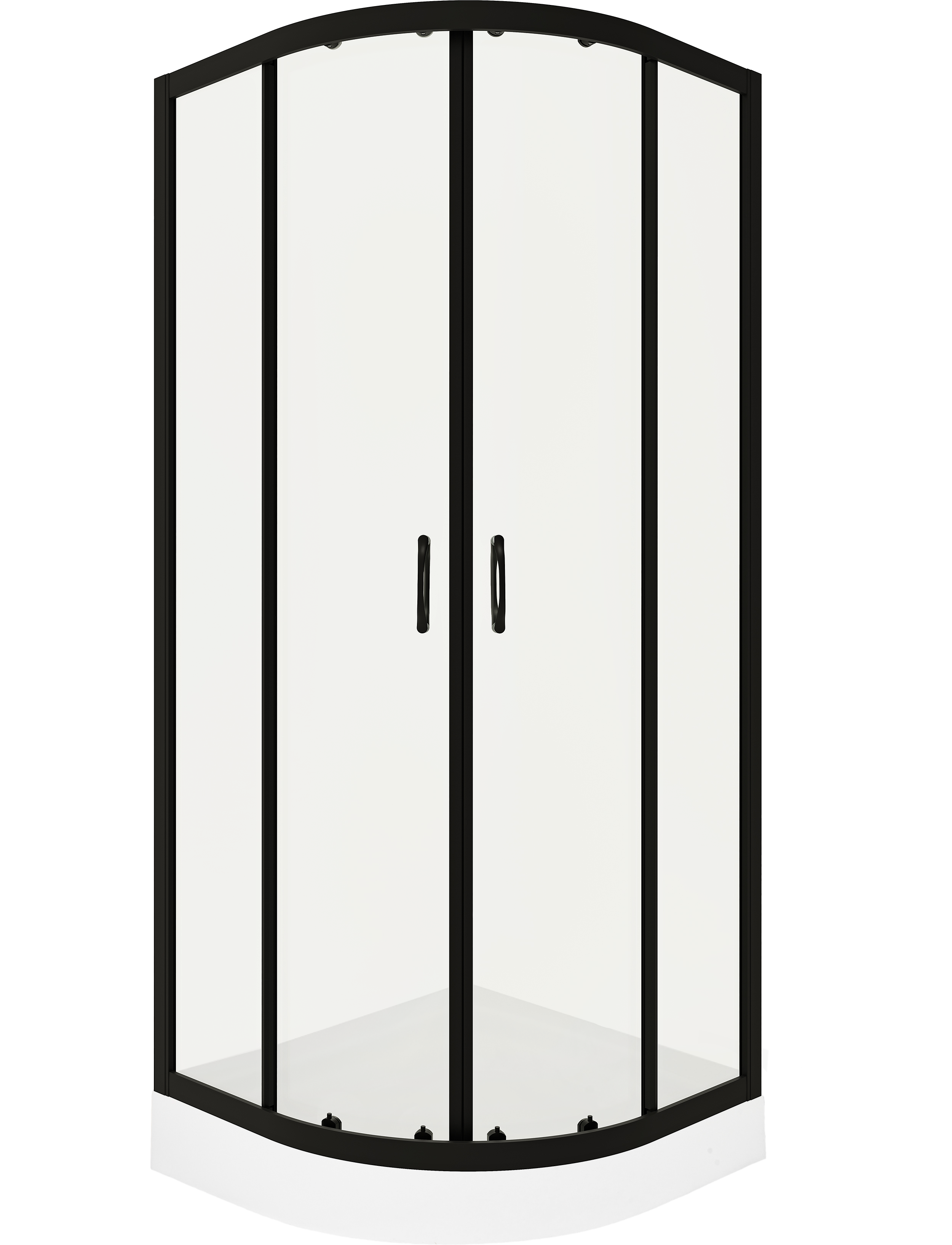 Kabina prysznicowa półokrągła Kama marki Liveno w komplecie z polskim brodzikiem o wysokości 16cm. Kabina posiada aluminiowe profile w kolorze czarnym oraz szkło hartowane o grubości 4mm w kolorze transparentnym. Wygodne w użytkowaniu drzwi przesuwne, w których zastosowane zostały podwójne rolki górne oraz pojedyncze, wypinane na dole pozwalające na łatwe czyszczenie. Klasyczny produkt, który doskonale pasuje do każdej łazienki.