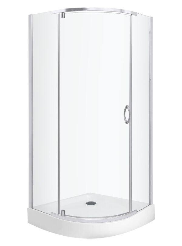 Kabina prysznicowa Splash 90 z brodzikiem 16 cm to eleganckie i funkcjonalne rozwiązanie, które doskonale sprawdzi się w każdej nowoczesnej łazience. Wykonana z przezroczystego szkła hartowanego o grubości 6 mm, pokrytego powłoką ochronną Kerra Protect, zapewnia łatwość w utrzymaniu czystości, a jej subtelny wygląd wpasowuje się w każde wnętrze. Aluminiowe, chromowane profile i uchwyty drzwiowe nadają kabinie nowoczesny i elegancki charakter. Dzięki drzwiom uchylnym o szerokości wejścia 58 cm, korzystanie z kabiny jest wyjątkowo wygodne. Kabina jest uniwersalna, co pozwala na montaż drzwi zarówno w prawym, jak i lewym narożniku, dostosowując ją do układu Twojej łazienki. W zestawie znajduje się półokrągły brodzik akrylowy o promieniu 55 cm, wykonany z wysokiej jakości akrylu sanitarnego, co zapewnia jego trwałość i łatwość w utrzymaniu. Brodzik ma wysokość 16 cm i doskonale komponuje się z całością, a jego biały kolor idealnie pasuje do nowoczesnych wnętrz. Kabina prysznicowa Splash 90 z brodzikiem to eleganckie połączenie stylu, wygody i funkcjonalności.