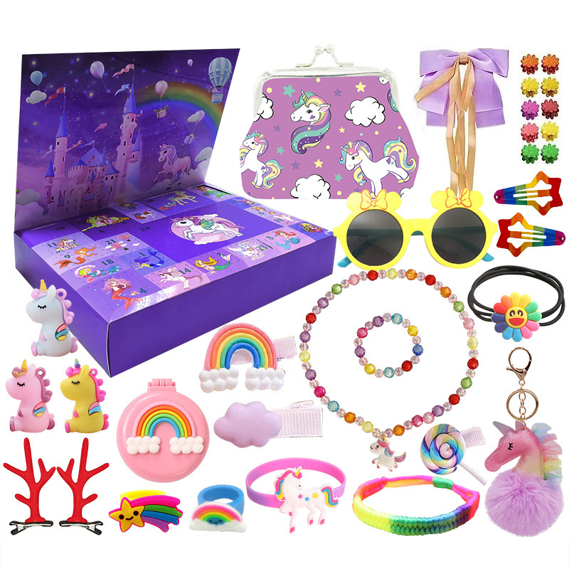 Kalendarz adwentowy na Boże Narodzenie, 24-dniowe odliczanie z dodatkami w kształcie jednorożca, świąteczny prezent-niespodzianka (24 sztuki)