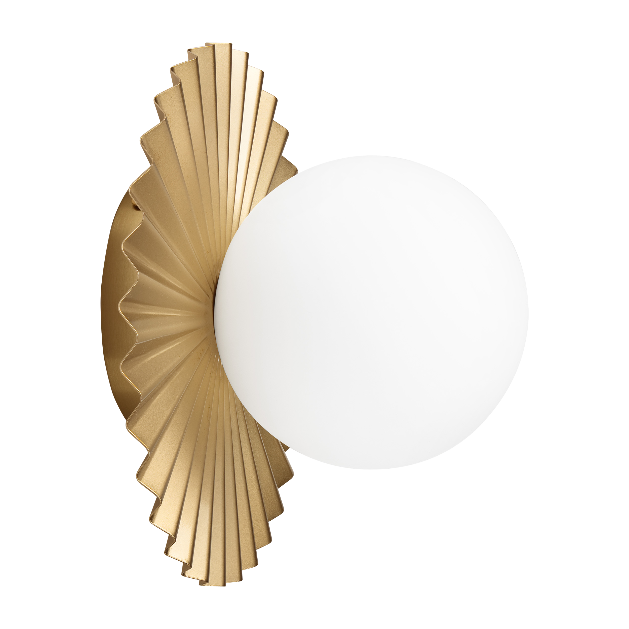 Kinkiet CHITA jest bardzo prosty w formie, ale niezwykle efektowny. Model ten może funkcjonować nie tylko jako kinkiet – z powodzeniem może pełnić role plafonu na suficie. Elementem składowym jest puszka montażowa oraz ryflowany dekoracyjny metalowy talerz – oba te elementy w miedziano – złotym kolorze. Do nich przykręcany jest biały klosz w kształcie kuli. Kolorystyka ma uniwersalne zastosowanie – połączenie miedzi, bieli i czerni sprawdzi się w każdym typie pomieszczeń. Świetnie sprawdzi się w ciągach komunikacyjnych lub jako oświetlenie dekoracyjne ścian w pomieszczeniach użytkowych. Model może funkcjonować samodzielnie lub być skomponowany w pomieszczeniach z innymi modelami z kolekcji CHITA. Montaż kinkietu do powierzchni odbywa się za pomocą metalowego wspornika ukrytego w puszce montażowej. Kinkiet CHITA można komponować z innymi modelami z kolekcji. Dzięki możliwości łatwego demontażu talerza – łatwo można utrzymać kinkiet w czystości.