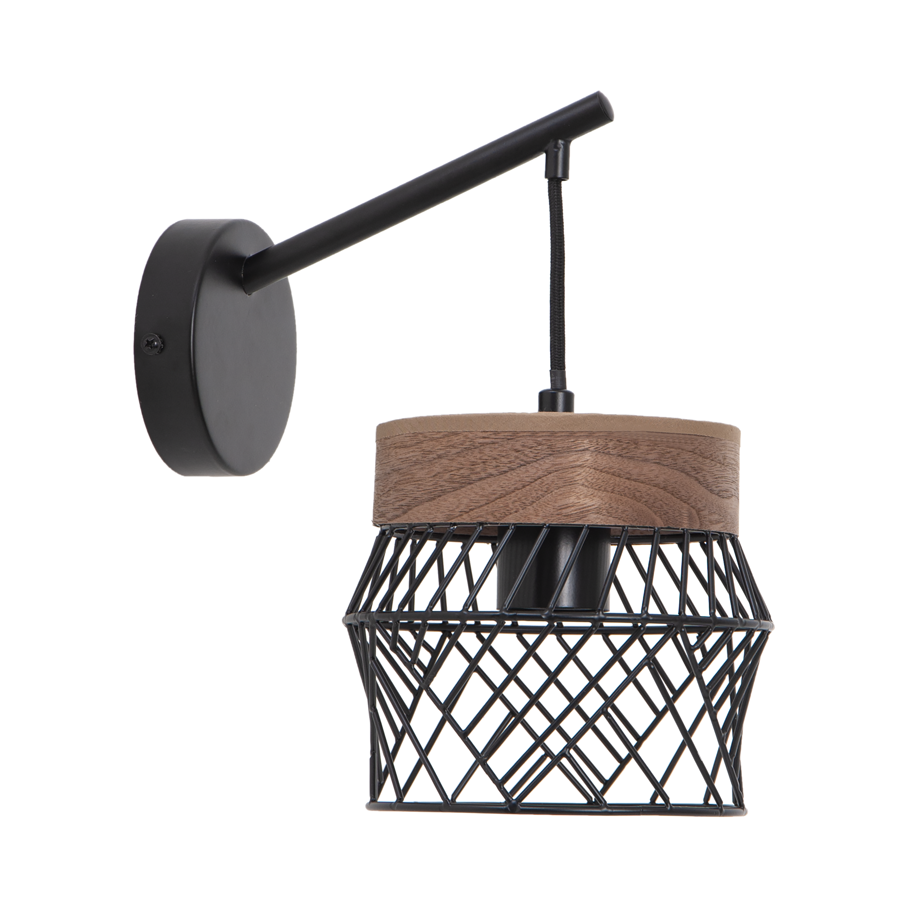 Kinkiet Kanel czarny z drewnem E27 Inspire