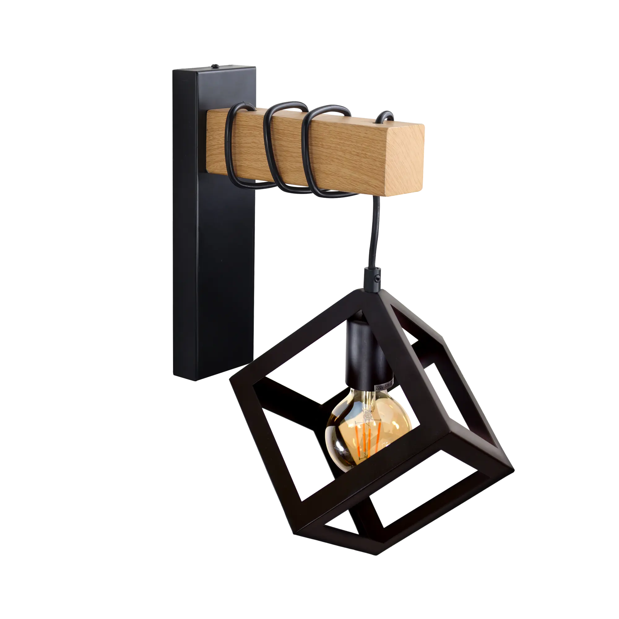 Kinkiet ścienny SWEDEN WOOD z gwintem E27 max 20W LED, czarno-brązowy, IP20.To prosty, elegancki i nowoczesny kinkiet, który ozdobi niejedno pomieszczenie. Świetnie sprawdzi się w pokoju dziennym jak i w sypialni, jadalni oraz w przedpokoju. Minimalistyczny design i widoczne źródło światła idealnie wpisują się w najnowsze trendy. Konstrukcja opiera sią na kloszu wykonanym z cienkiego kątownika tworzącego figury geometryczne. Klosz opiera się na ramieniu w kolorze brązowym, przypominającym drewno.