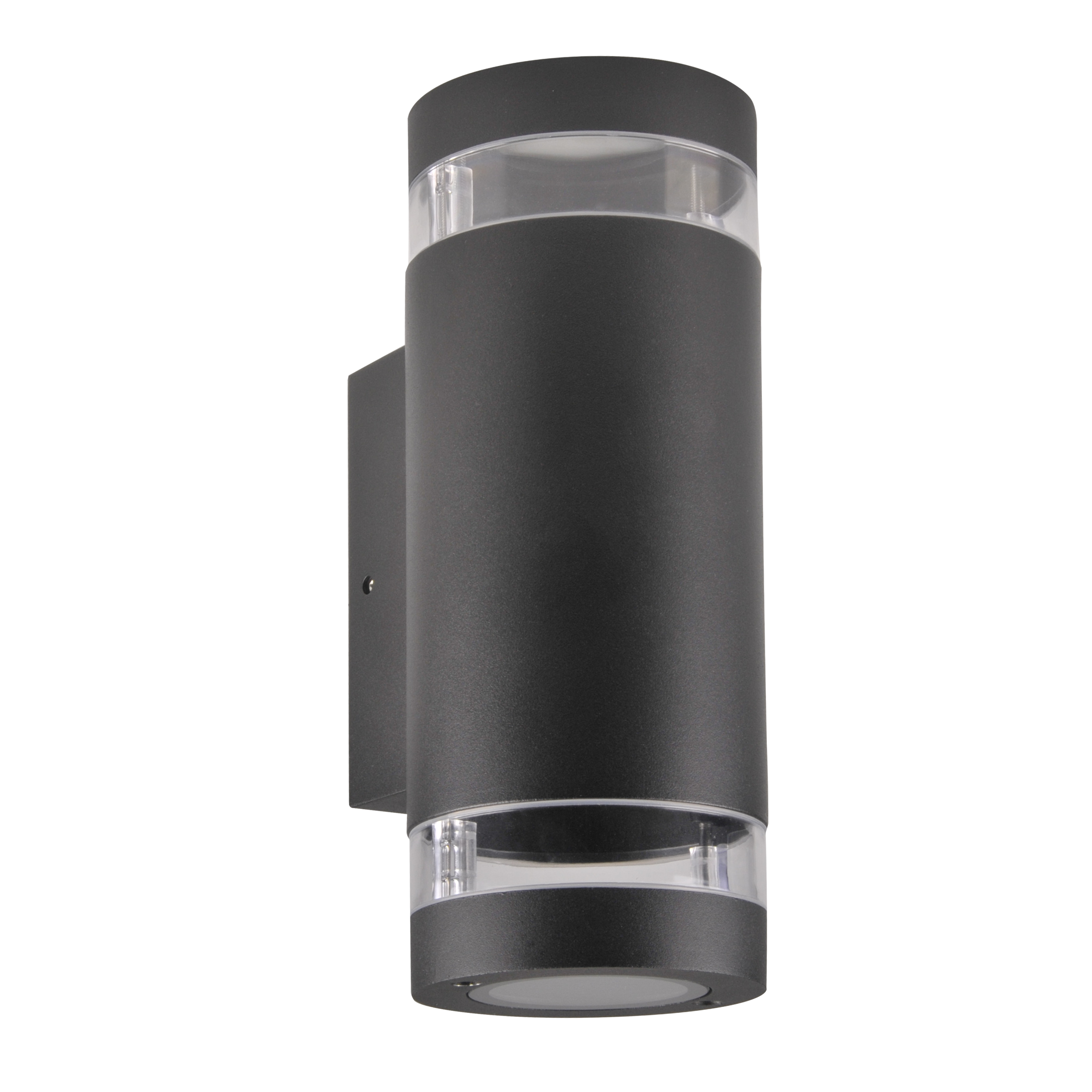 Nowoczesny kinkiet zewnętrzny RINO w kolorze czarnym z podwójnym źródłem światła góra/dół idealnie nadaje się do oświetlenia budynku na elewacji. Kształt kinkietu okrągły prosty doskonale sprawdzi się zarówno w nowoczesnej jak i w tradycyjnej zabudowie. Świetnie będzie wyglądał w zestawie serii RINO: ze słupkami 44cm i 74cm. Ozdobi nasze wejścia, tarasy, altanki. Źródło światła osłonięte jest przezroczystym kloszem z tworzywa sztucznego. Lampa wykonana jest z aluminium. Konstrukcja oprawy i zastosowane materiały zapewniają wysoką odporność mechaniczną oraz odporność na wnikanie wody i pyłu. Jako źródło światła stosuje się dwie żarówki LED z trzonkiem GU10. Oprawa sprzedawana bez źródła światła. IP44.