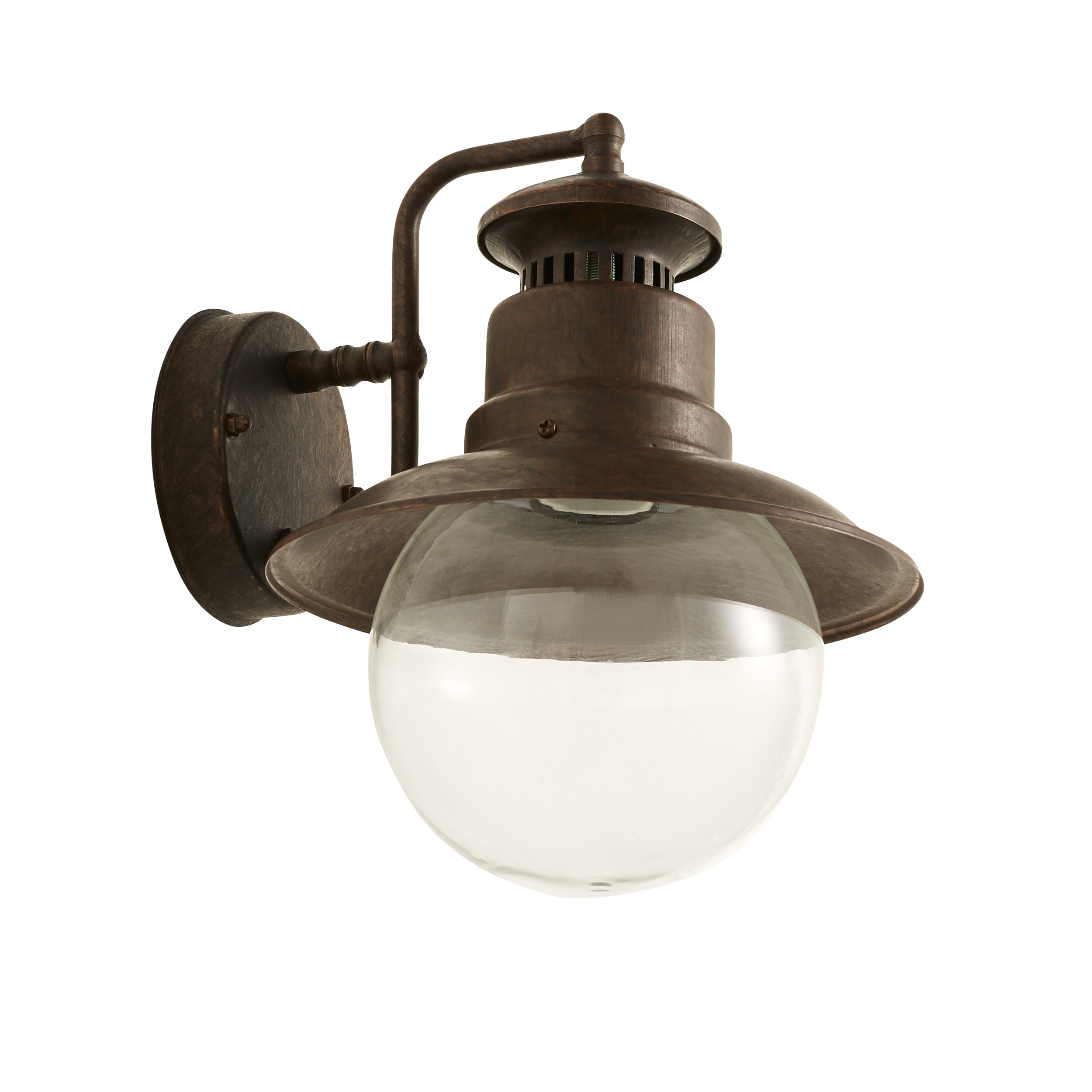 Kinkiet zewnętrzny Rust Marina to klasyczna lampa w rustykalnym stylu. Będzie dobrze komponować się na elewacjach drewnianych lub drewnopodobnych. Przezroczysty kulisty klosz zapewnia odpowiedni poziom oświetlenia po zmroku. Jest przystosowana do zamontowania żarówek LED z trzonkiem E27, dzięki czemu zużycie energii będzie niższe. Żarówka nie jest dołączona do zestawu - możesz sam wybrać jaka barwa światła i moc będzie Ci najbardziej odpowiadać. Lampa posiada klasę szczelności IP44, co oznacza zabezpieczenie przed ciałami stałymi o średnicy większej niż 1 mm (np. owady) oraz ochronę przed kroplami padającymi pod dowolnym kątem (np. deszcz, woda ze zraszaczy nawadniających). Urządzenie takie można stosować/montować na zewnątrz. Należy jednak pamiętać, żeby urządzenie nie pozostawało pod powierzchnia wody i nie było narażone na strumień wodny. Kinkiet ogrodowy Rust Marina będzie piękną ozdobą fasady Twojego domu, tarasu czy balkonu.
