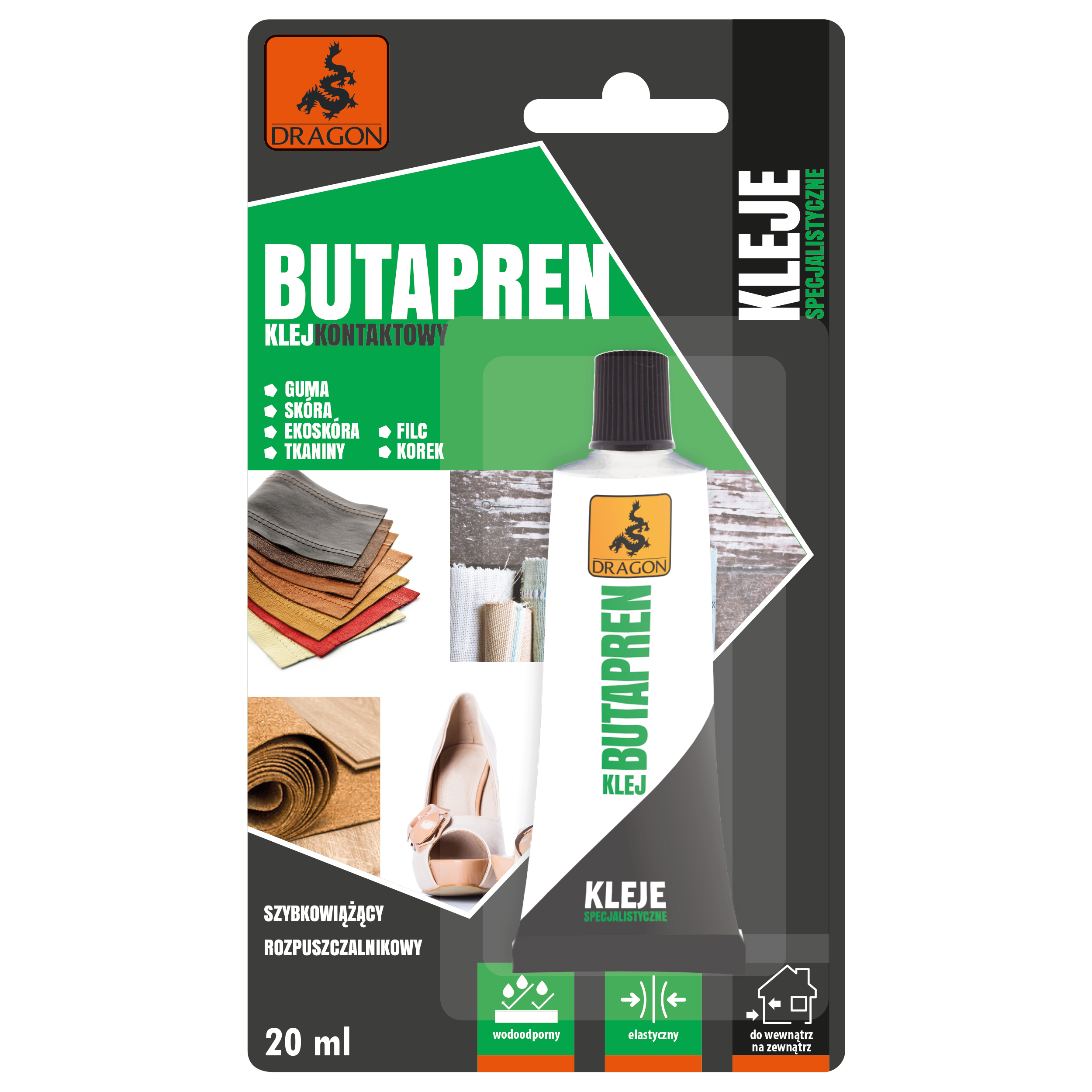 Łatwy w użyciu, rozpuszczalnikowy klej kontaktowy. Szybko wiąże nie plamiąc klejonych elementów.