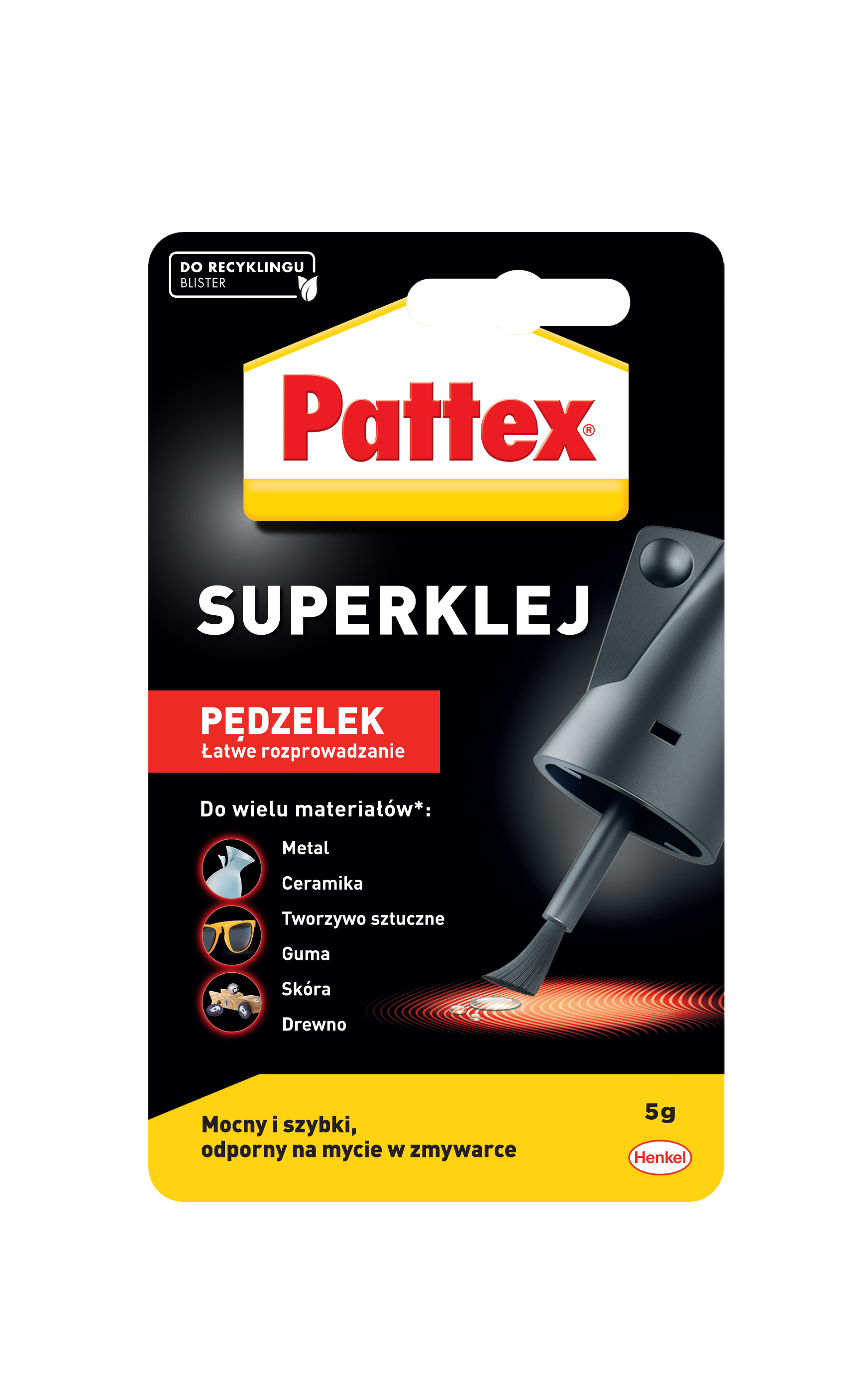 PATTEX S.O.S. Super Klej z pędzelkiem jest idealny do drewna, tektury, papieru, gumy, metalu, ceramiki, porcelany, skóry, tkanin, plastiku i większości tworzyw sztucznych. Dzięki bezpiecznemu i innowacyjnemu opakowaniu chroni przed przypadkowym rozlaniem kleju i zapewnia pełną kontrolę ilości nanoszonego kleju. Doskonale sprawdza się przy drobnych naprawach, modelarstwie oraz pracach dekoracyjnych